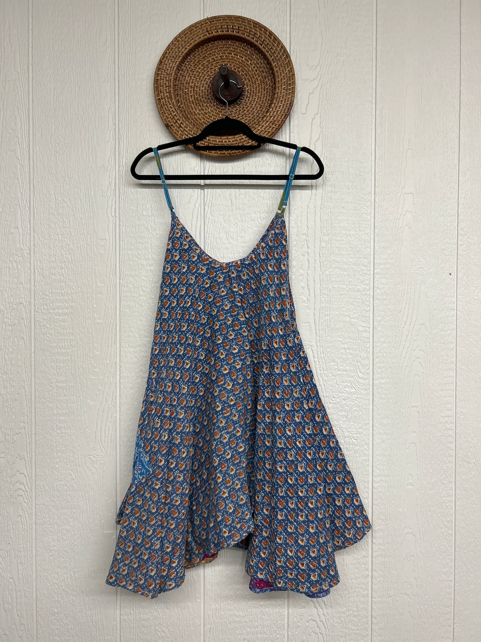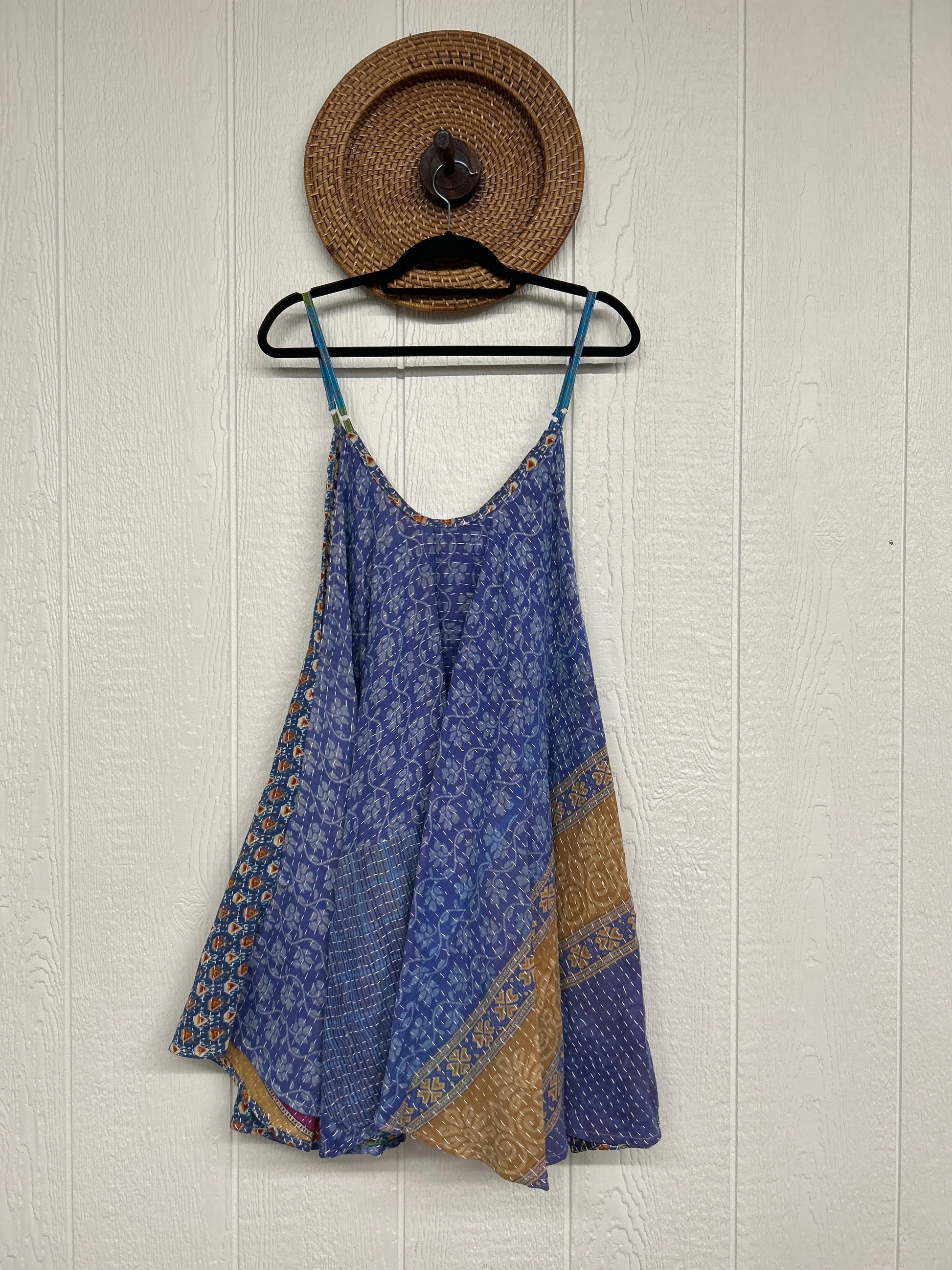 Crafted from our ultra lux cotton Kantha stitch sari the Moonchild Mini Dress features adjustable straps, interior pockets and an exaggerated sweep for extra dimension. A total vibe whether you wear as a layering piece under your favorite Kantha Bae pieces or on it's own.