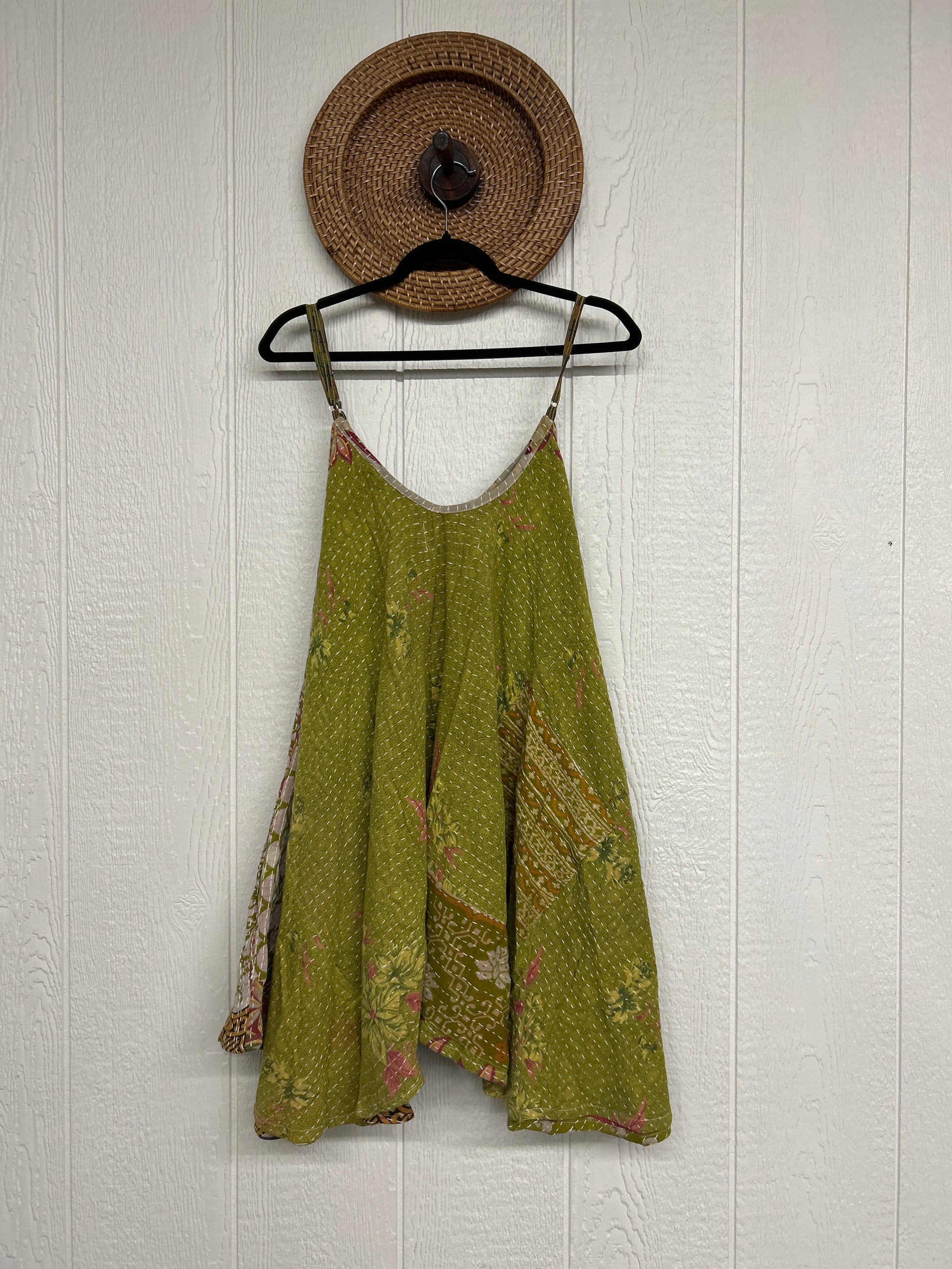 Crafted from our ultra lux cotton Kantha stitch sari the Moonchild Mini Dress features adjustable straps, interior pockets and an exaggerated sweep for extra dimension. A total vibe whether you wear as a layering piece under your favorite Kantha Bae pieces or on it's own.