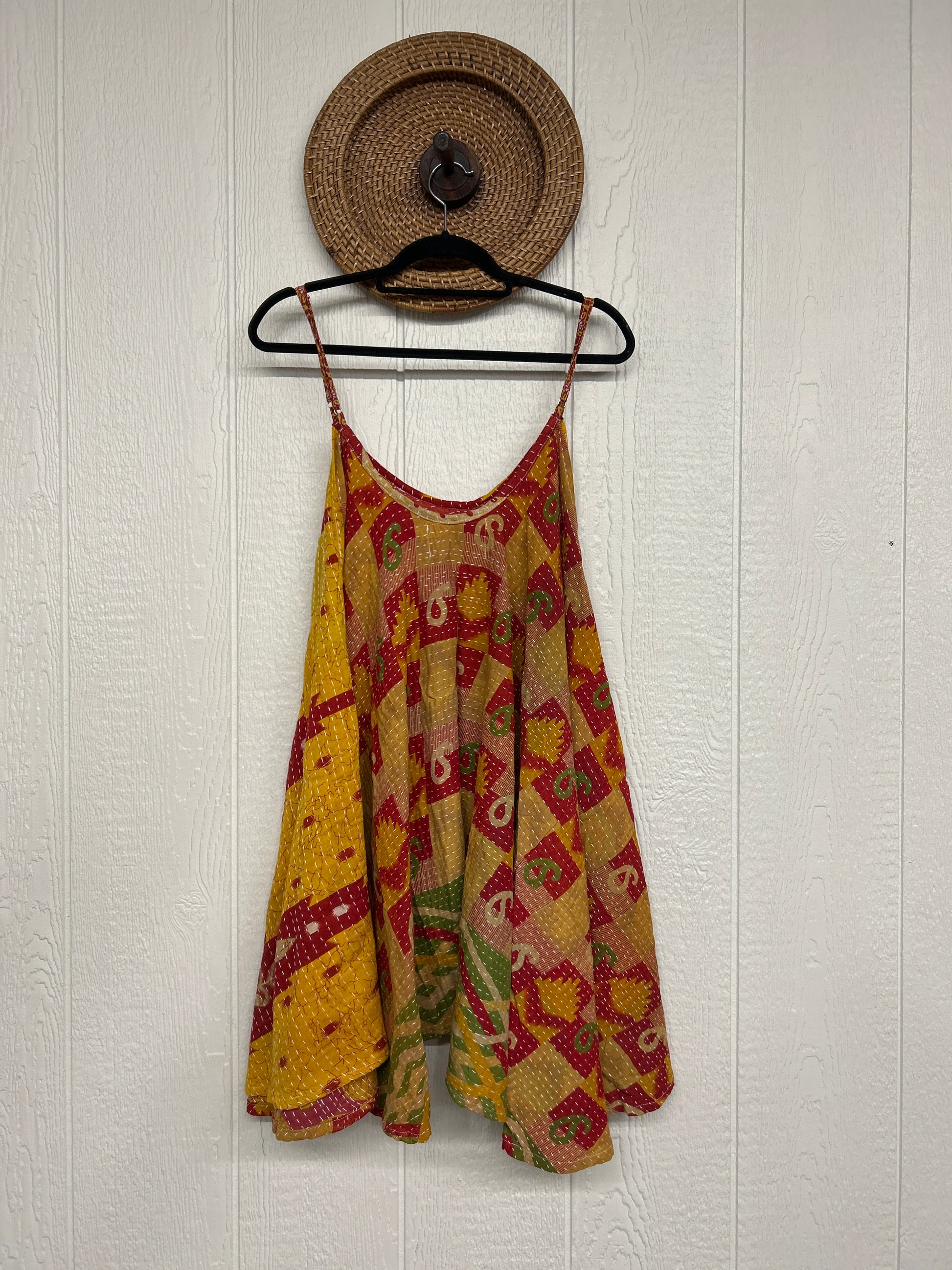 Crafted from our ultra lux cotton Kantha stitch sari the Moonchild Mini Dress features adjustable straps, interior pockets and an exaggerated sweep for extra dimension. A total vibe whether you wear as a layering piece under your favorite Kantha Bae pieces or on it's own.