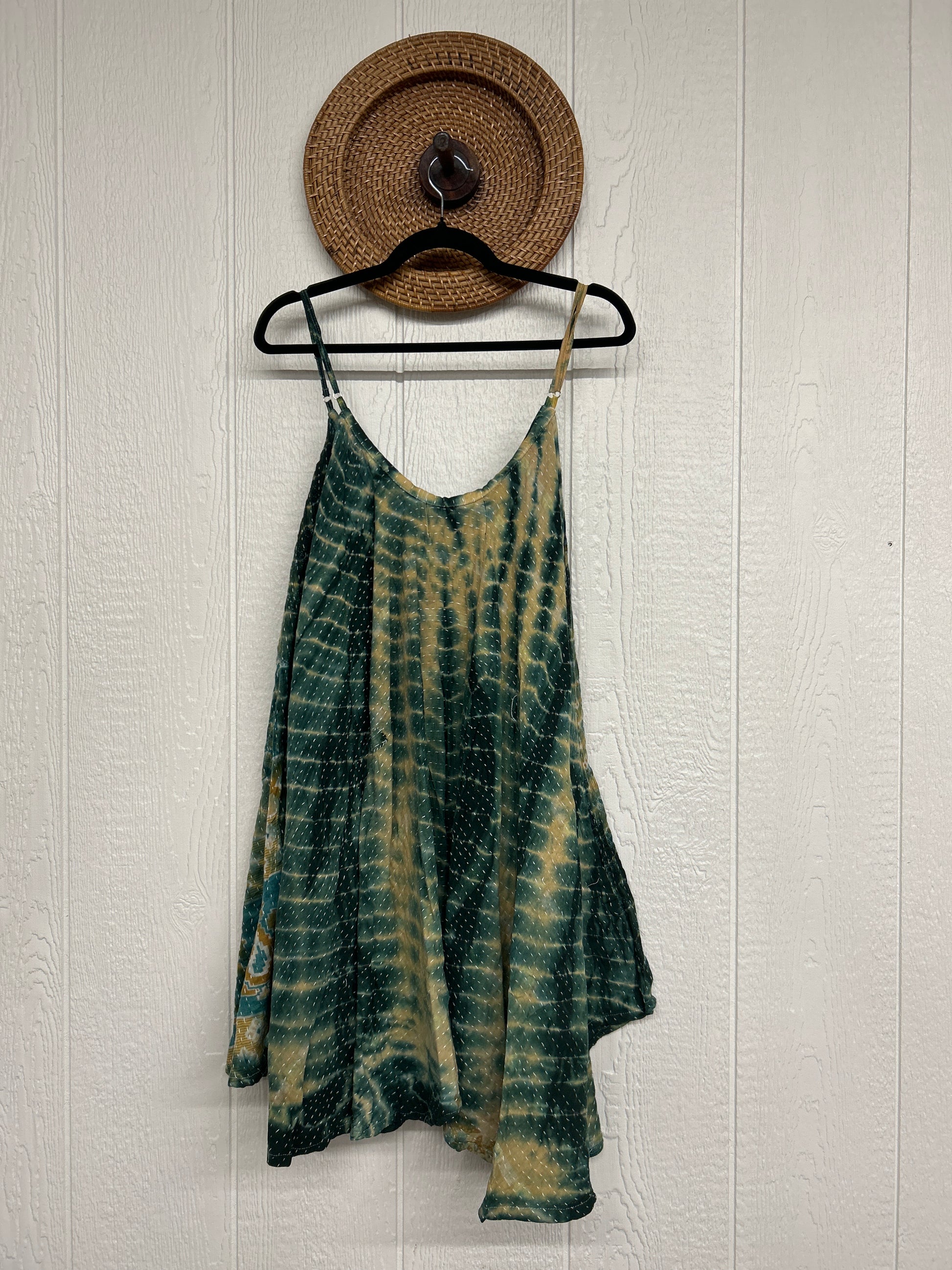 Crafted from our ultra lux cotton Kantha stitch sari the Moonchild Mini Dress features adjustable straps, interior pockets and an exaggerated sweep for extra dimension. A total vibe whether you wear as a layering piece under your favorite Kantha Bae pieces or on it's own.