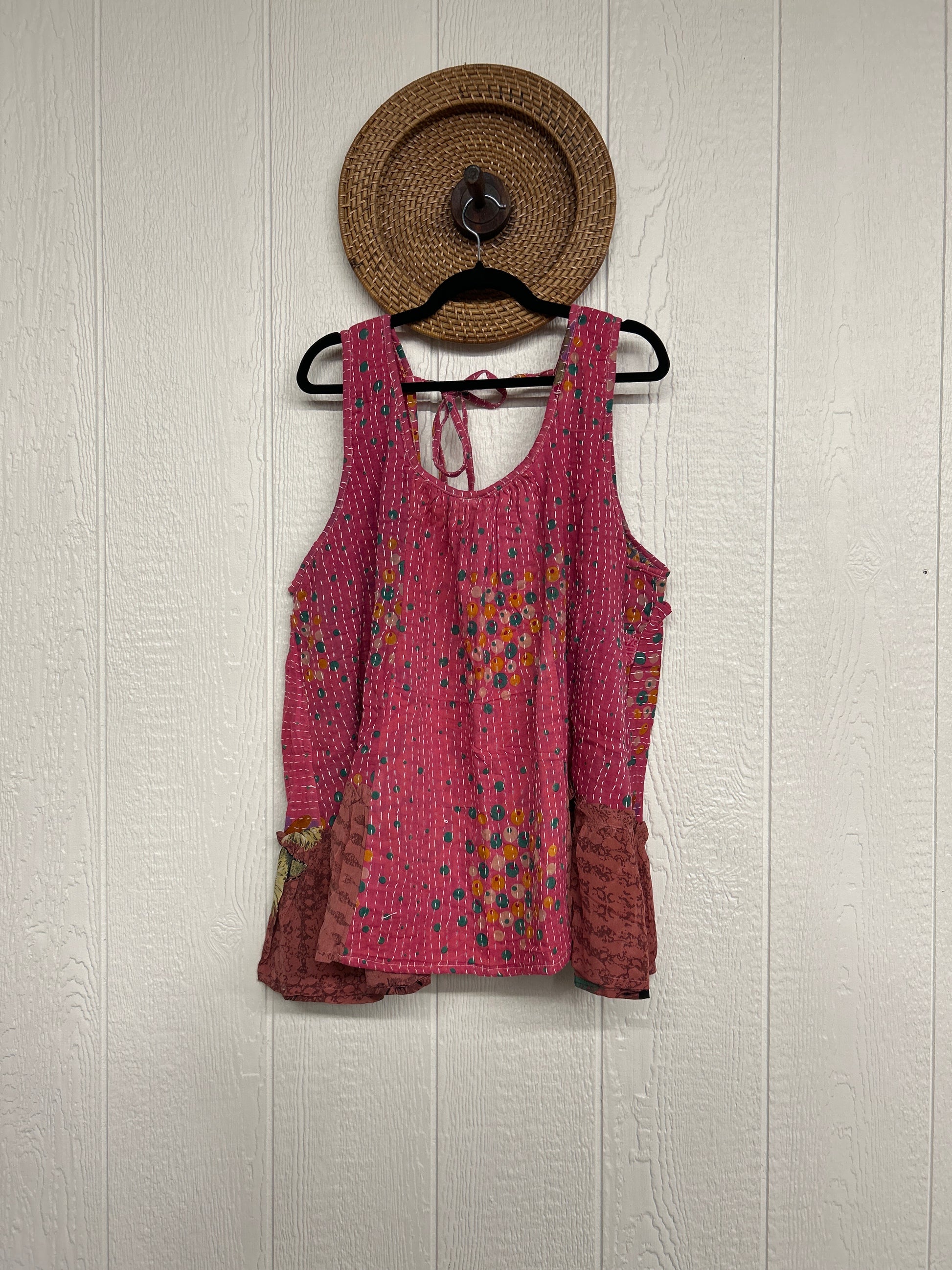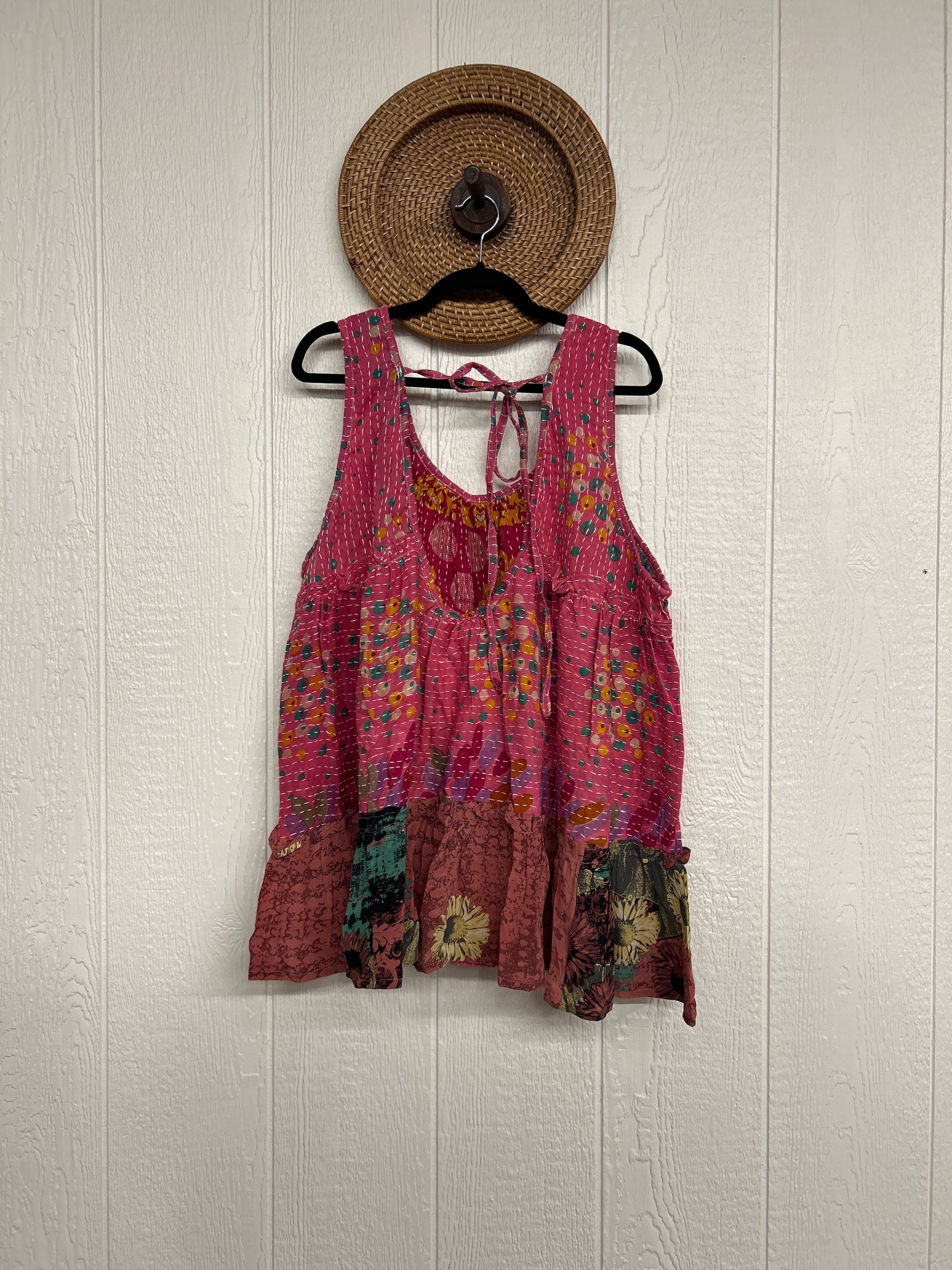 Made from a dreamy combo of our ultra lux cotton kantha stitch sari and crepe silk sari, the Mystic Tunic features a tie back on the shoulder to make it fully customizable.