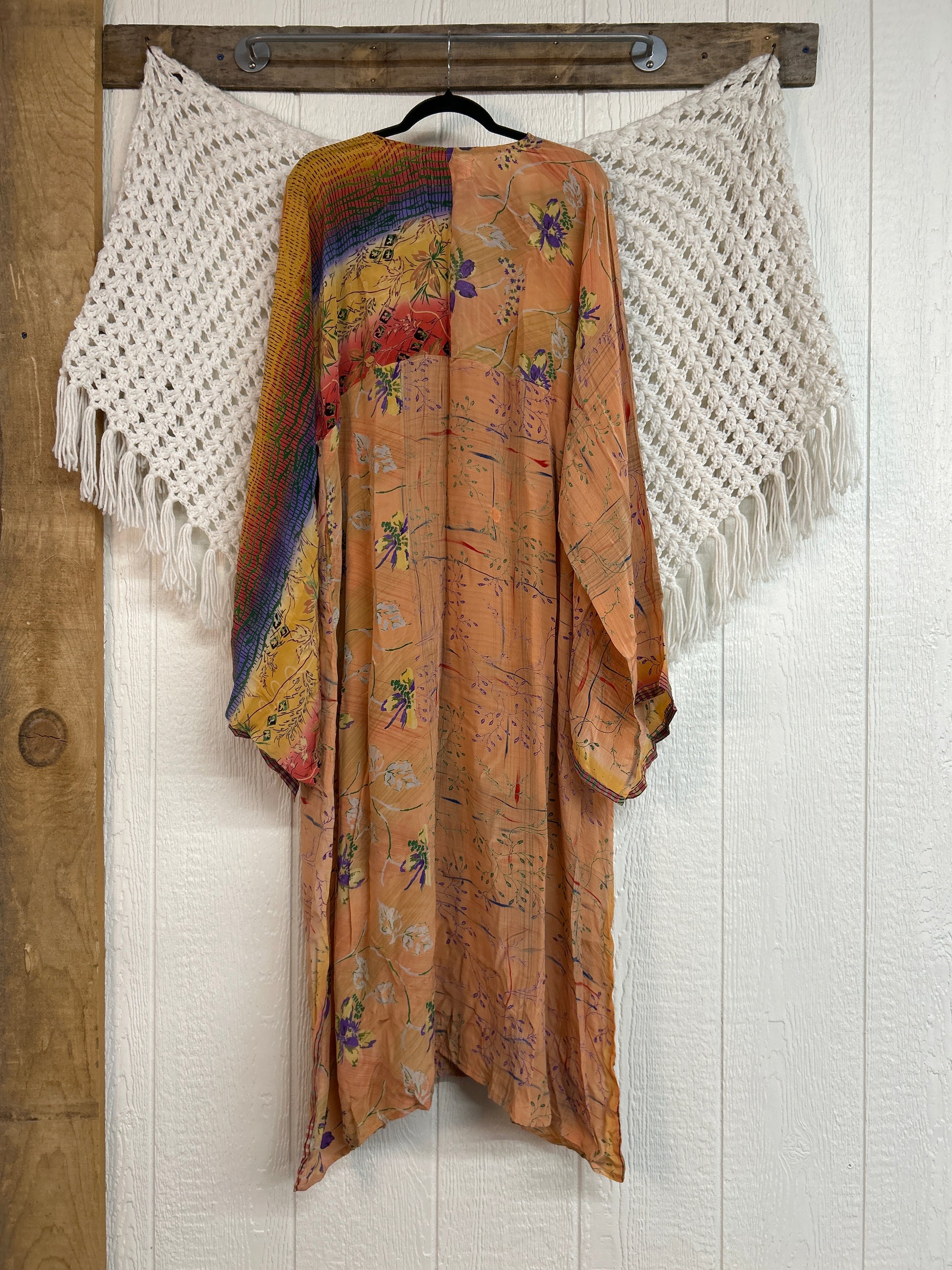 Crafted from our ultra lux vintage crepe sari this floaty dream features wide bell sleeves, deep v neckline, maxi silhouette with side slits for extra dimension.