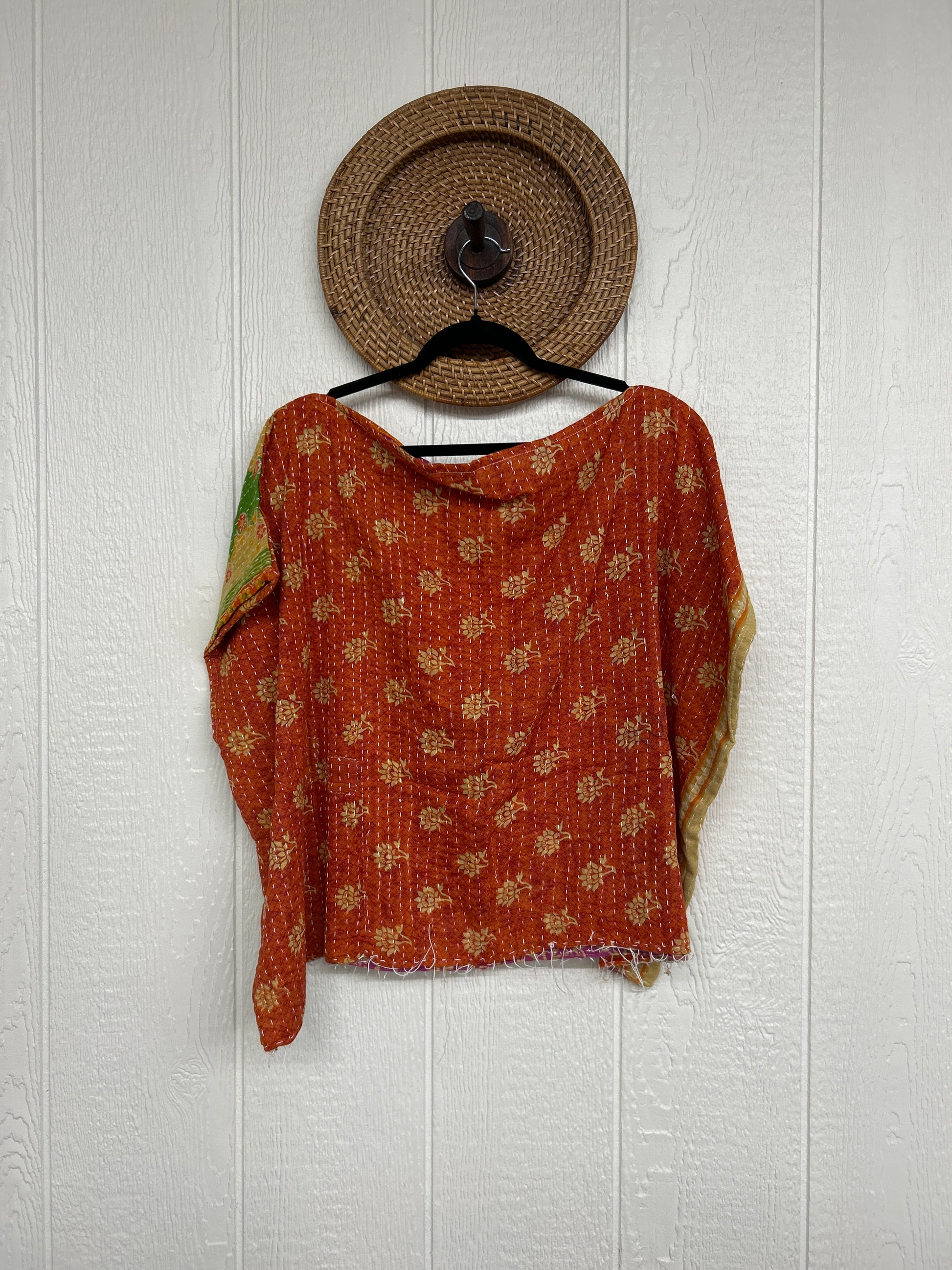 Crafted from kantha stitched vintage cotton sari our OG Crop is slouchy perfection. Fully reversible PLUS you can wear it on ALL four sides. Features an unfinished fringe hem for extra vibes. We know the OG Crop will be your new go to!