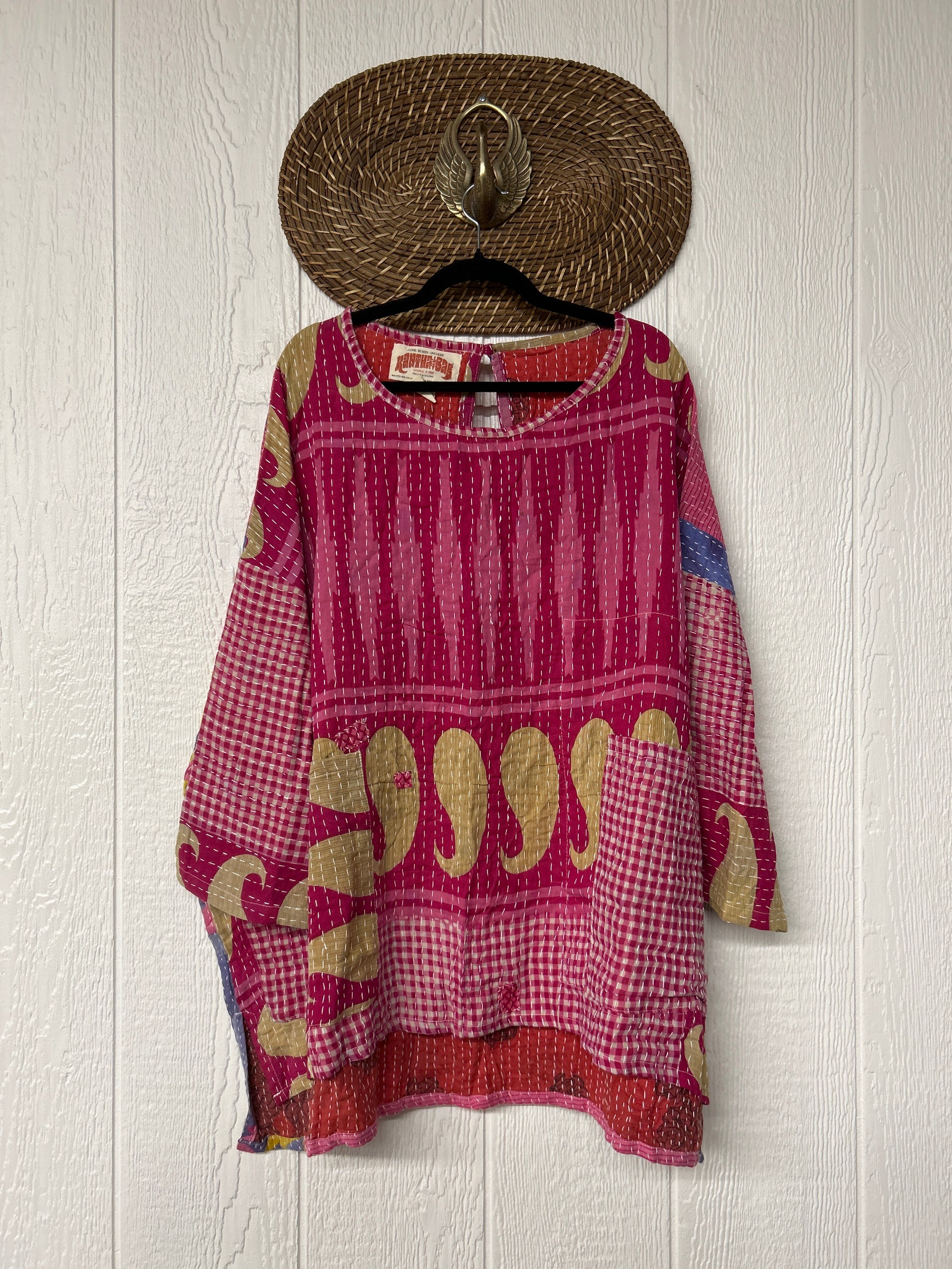 Crafted from our ultra lux vintage cotton kantha stitched sari this tunic is based on our best selling dream line pullover.