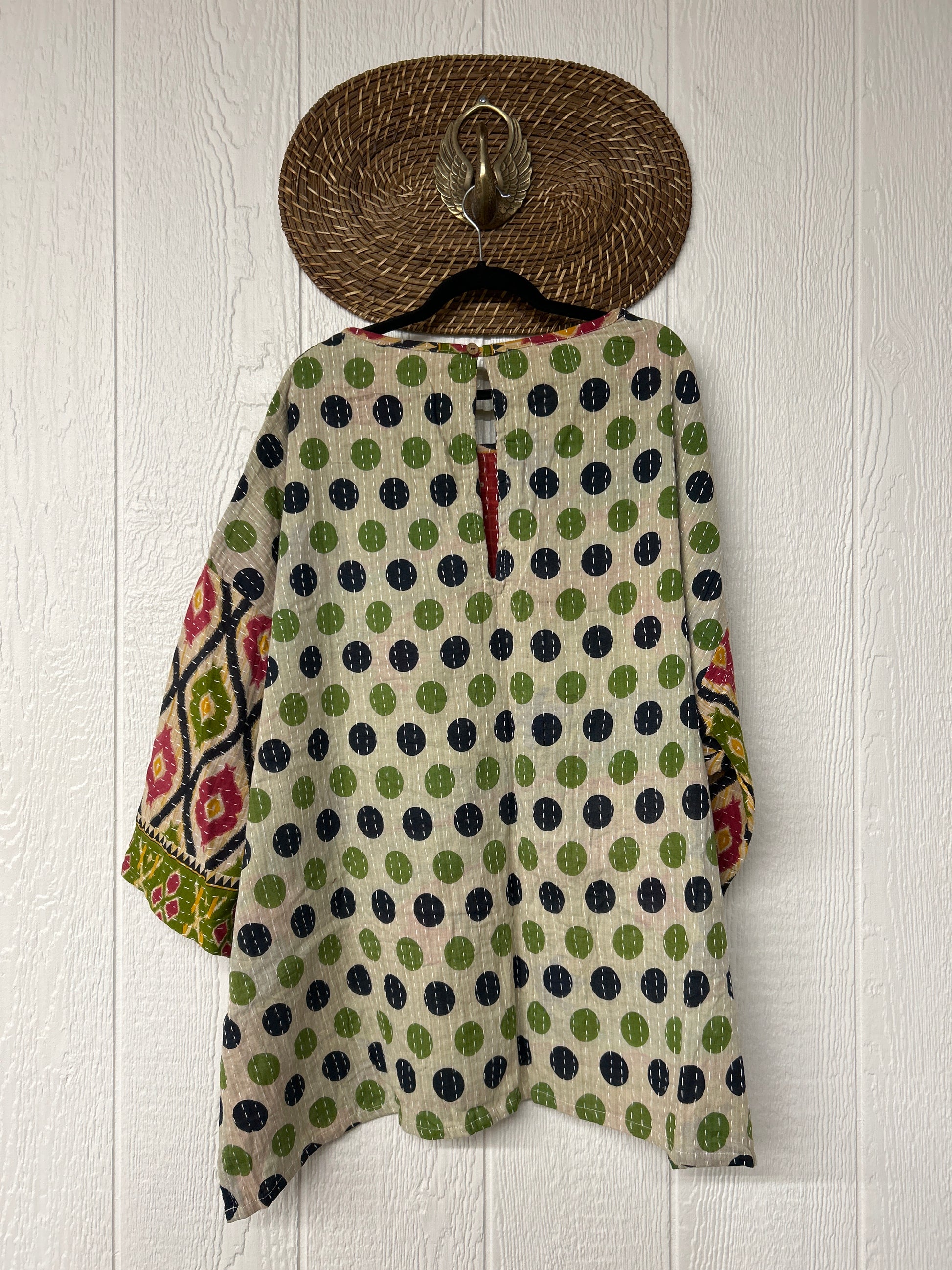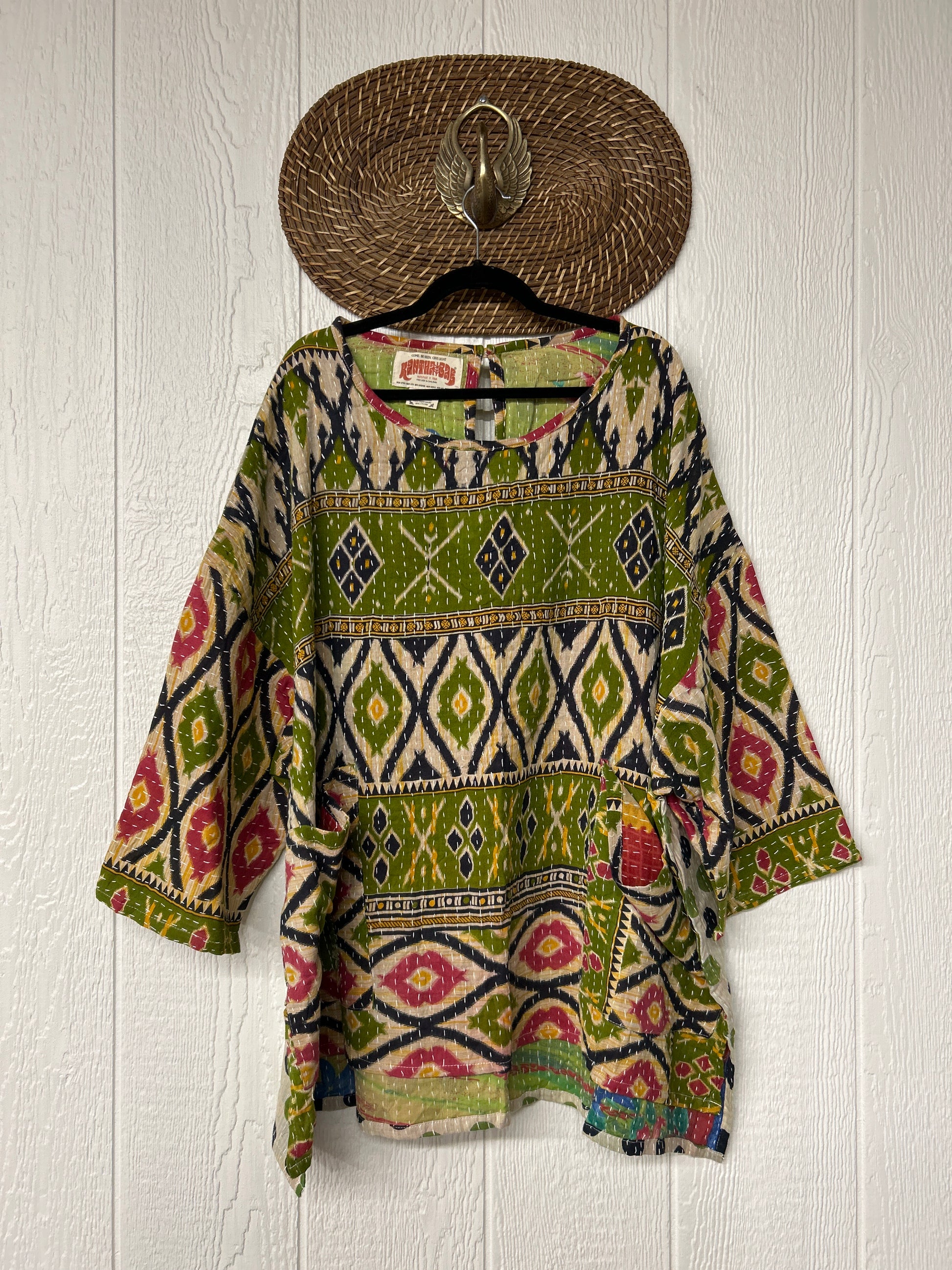 Crafted from our ultra lux vintage cotton kantha stitched sari this tunic is based on our best selling dream line pullover.