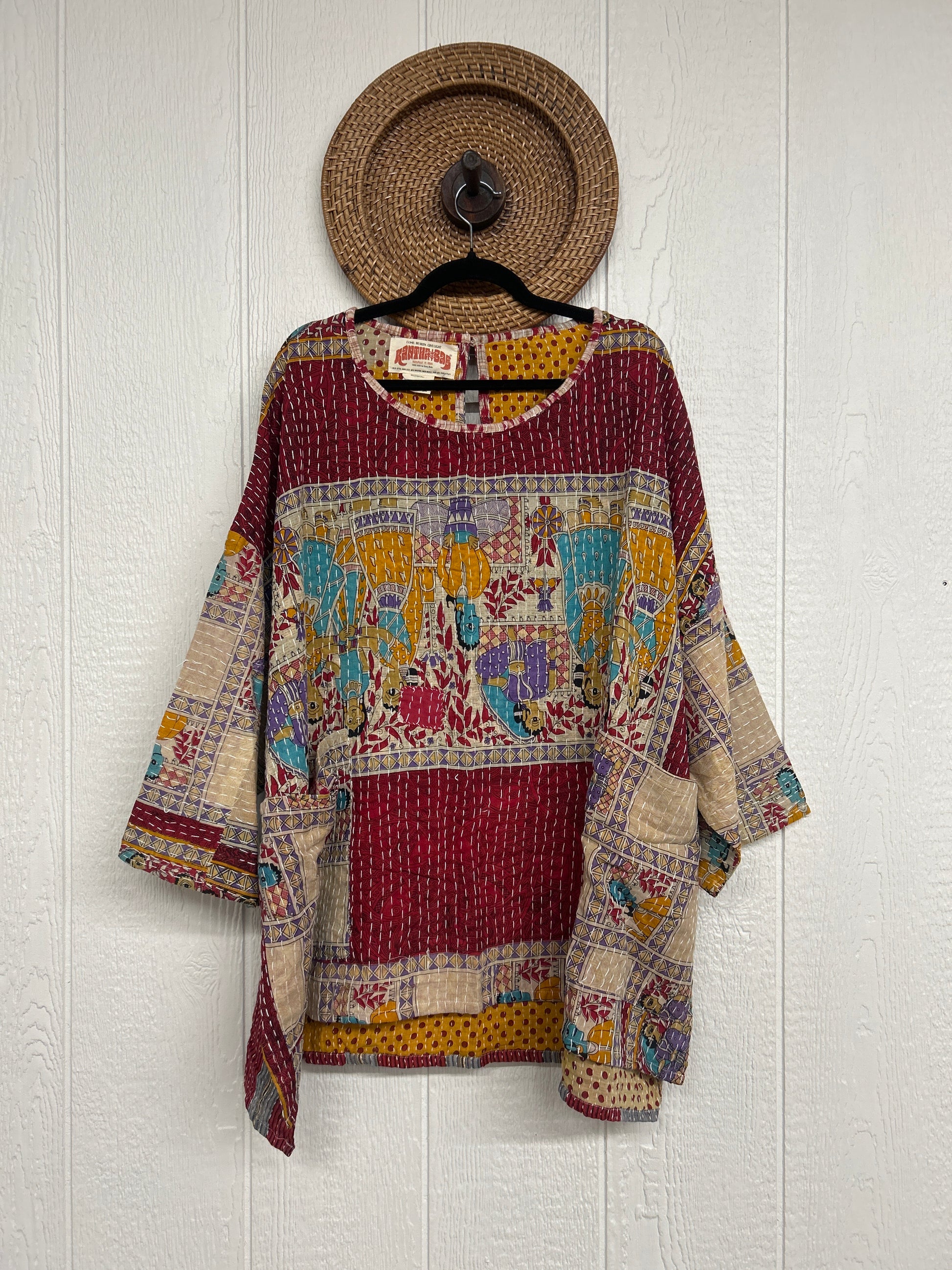 Crafted from our ultra lux vintage cotton kantha stitched sari this tunic is based on our best selling dream line pullover.