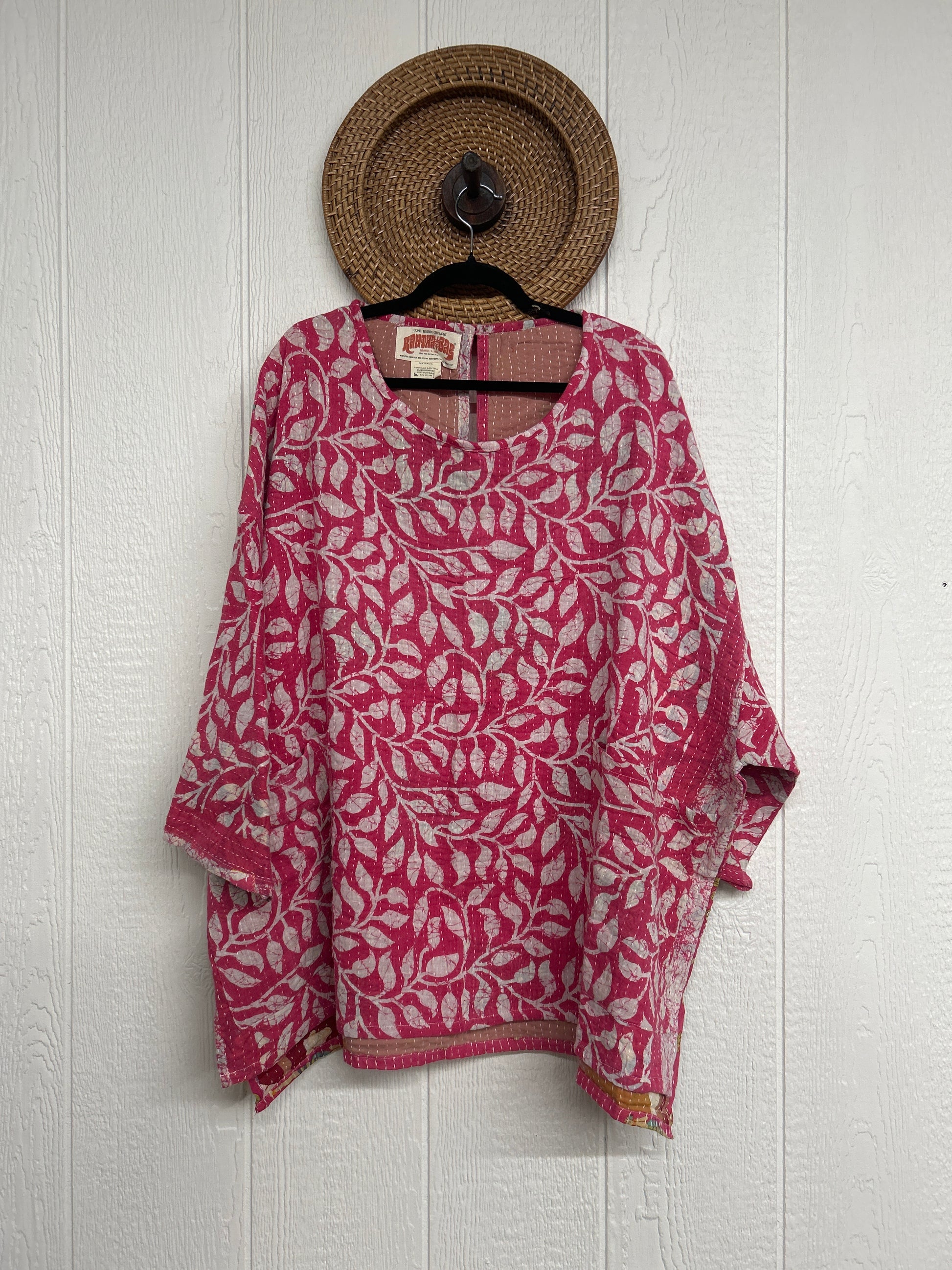 Features key hole in the back, slouchy pockets, a scoop neckline, high low hem with side slits for extra dimension. The Kantha Dream Pullover is fully reversible giving you two tops in one. We know it will be your new go to.