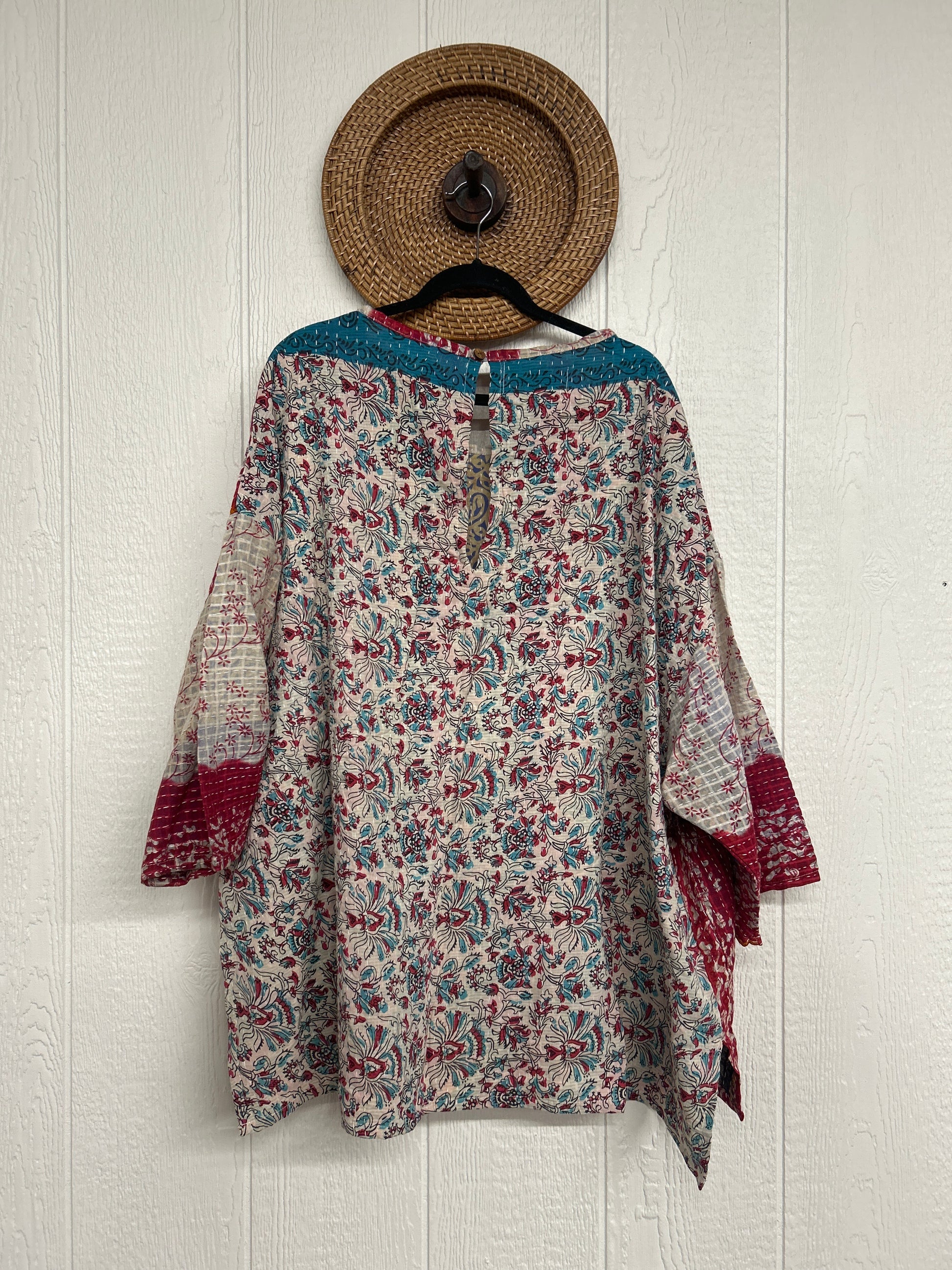 Crafted from our ultra lux vintage cotton kantha stitched sari this tunic is based on our best selling dream line pullover.