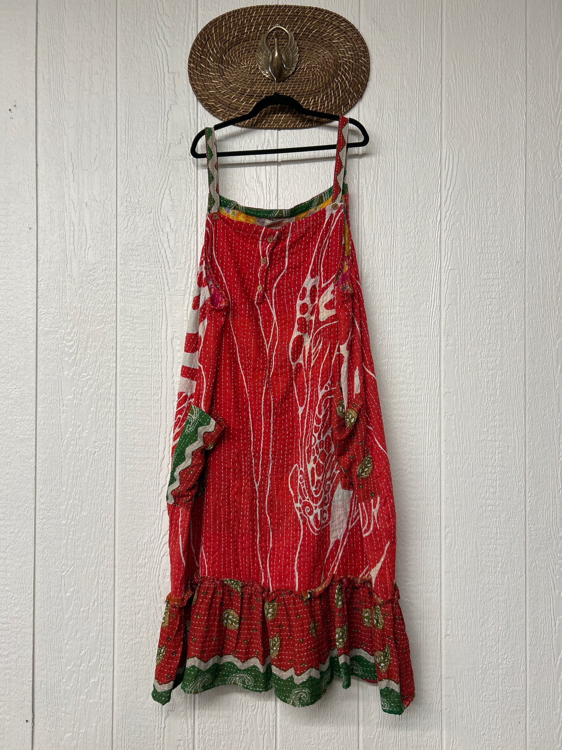 This groovy dream is made from our vintage cotton kantha sari. Crafted and sewn by families in a small village in Northern India providing work and a fair living. Disclosure: Our vintage styles have lived a full life before becoming the designs in our shop. Fabrics may have small threads or holes in the layers. Color inconsistency or small stains may be present.The saris are sewn together and extend the life of each design. Imperfections should be celebrated.