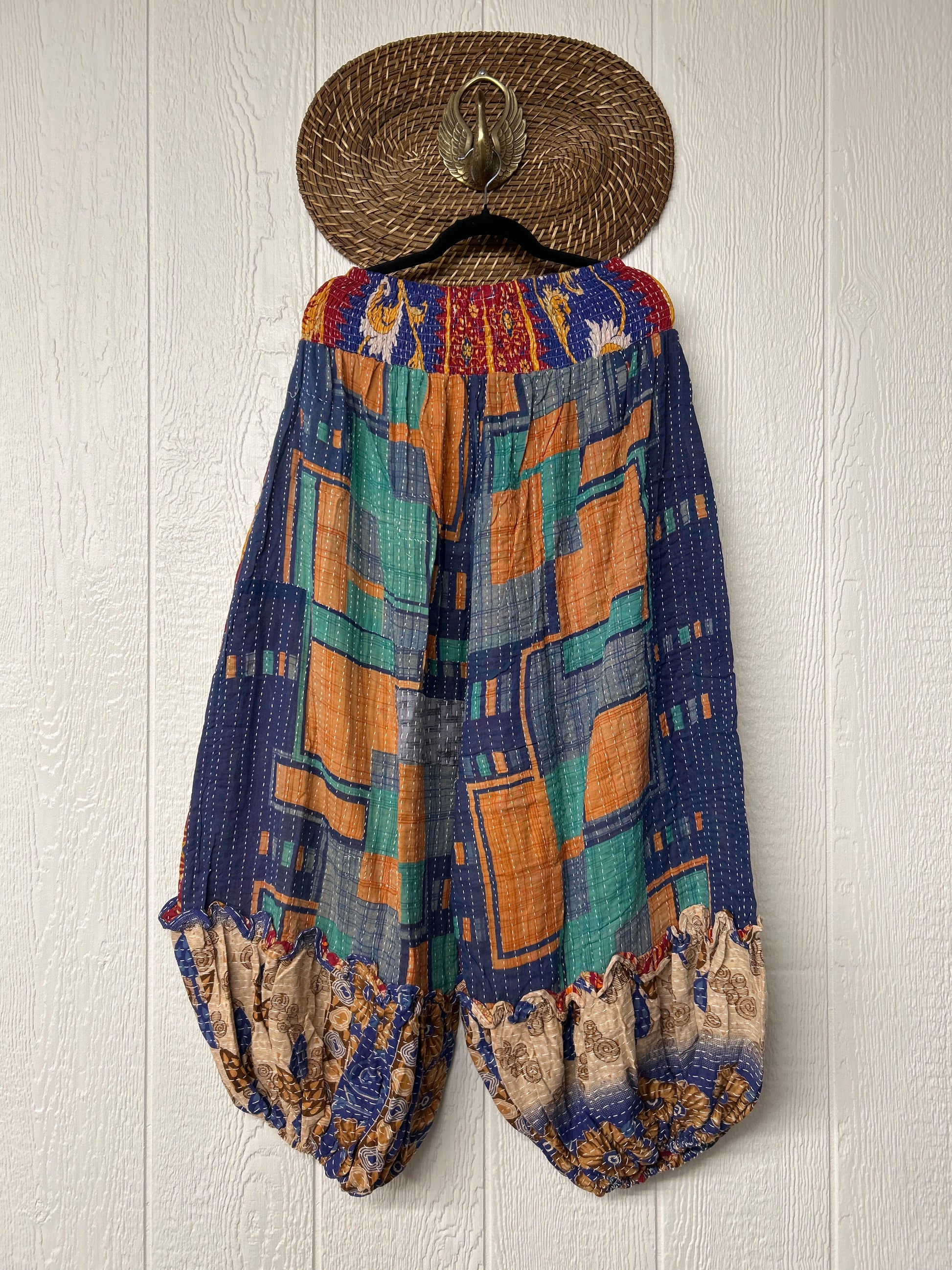 Crafted from our ultra lux kantha stitched vintage cotton sari these pants feature exterior slouchy pockets, a stretchy waistband and an elastic ankle opening. Dress these dream pants up or down to become the ultimate vibe!