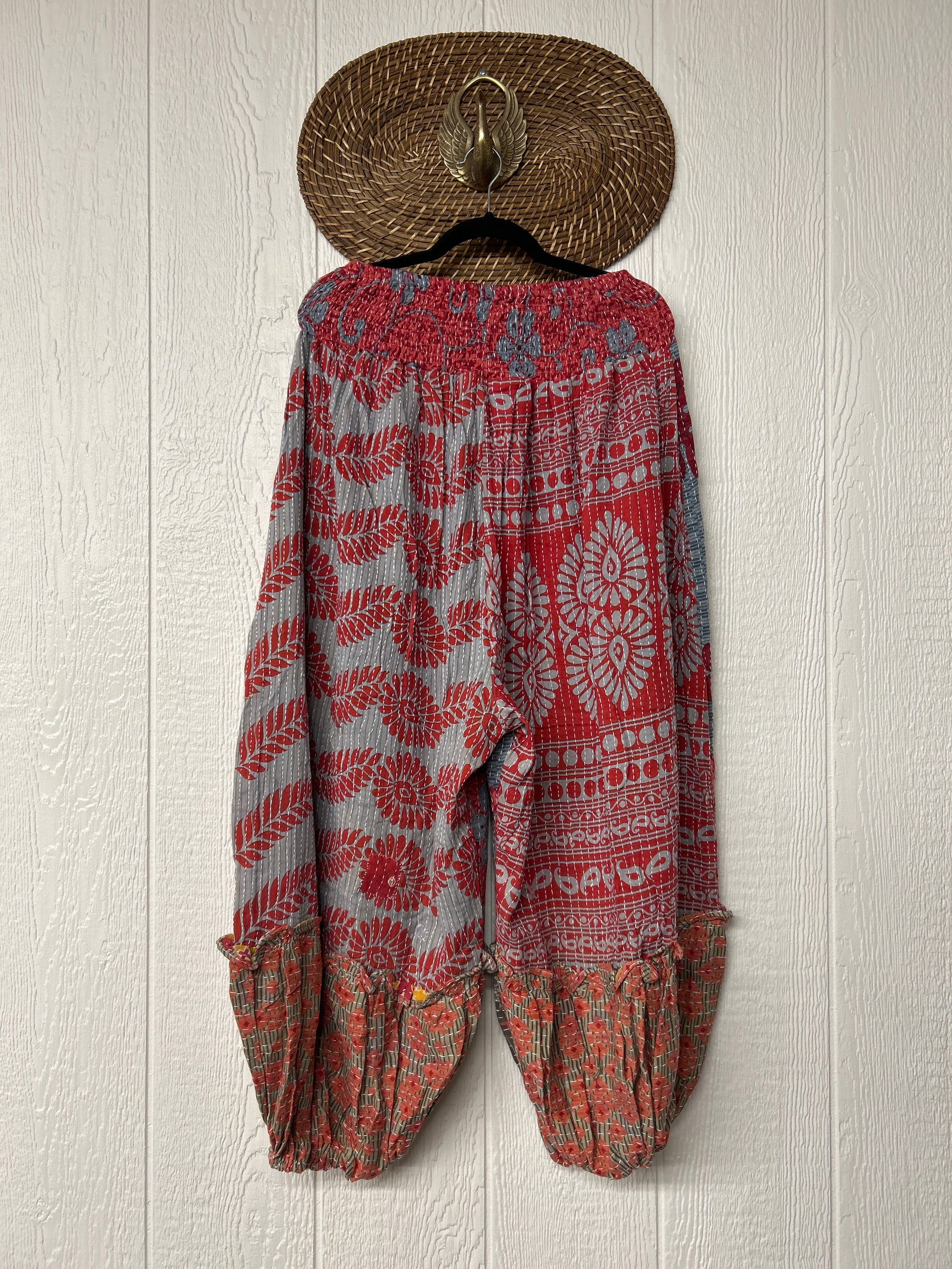 Crafted from our ultra lux kantha stitched vintage cotton sari these pants feature exterior slouchy pockets, a stretchy waistband and an elastic ankle opening. Dress these dream pants up or down to become the ultimate vibe!