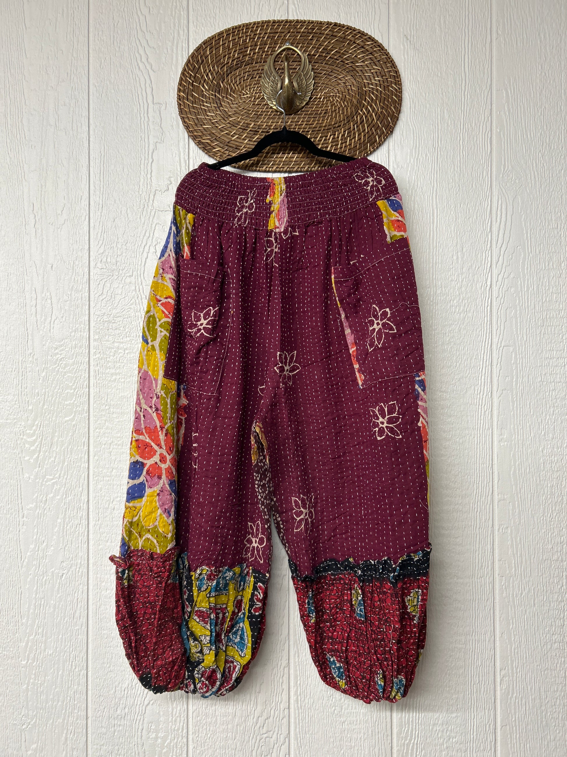 Crafted from our ultra lux kantha stitched vintage cotton sari these pants feature exterior slouchy pockets, a stretchy waistband and an elastic ankle opening. Dress these dream pants up or down to become the ultimate vibe!