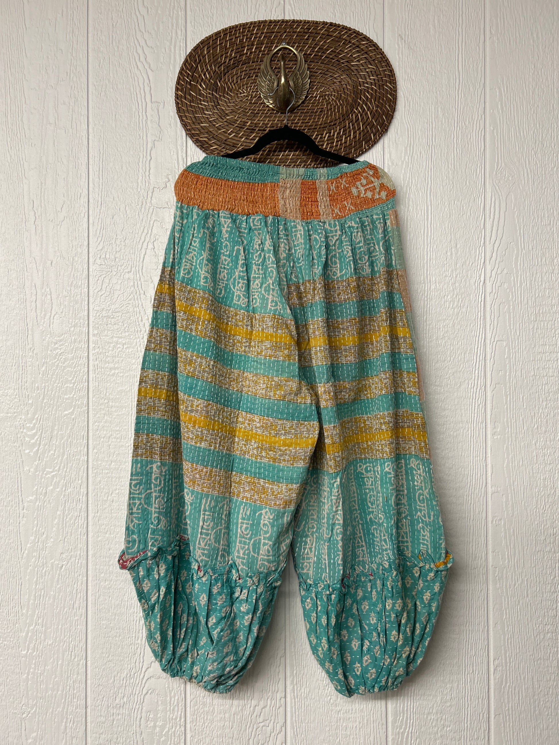 Crafted from our ultra lux kantha stitched vintage cotton sari these pants feature exterior slouchy pockets, a stretchy waistband and an elastic ankle opening. Dress these dream pants up or down to become the ultimate vibe!