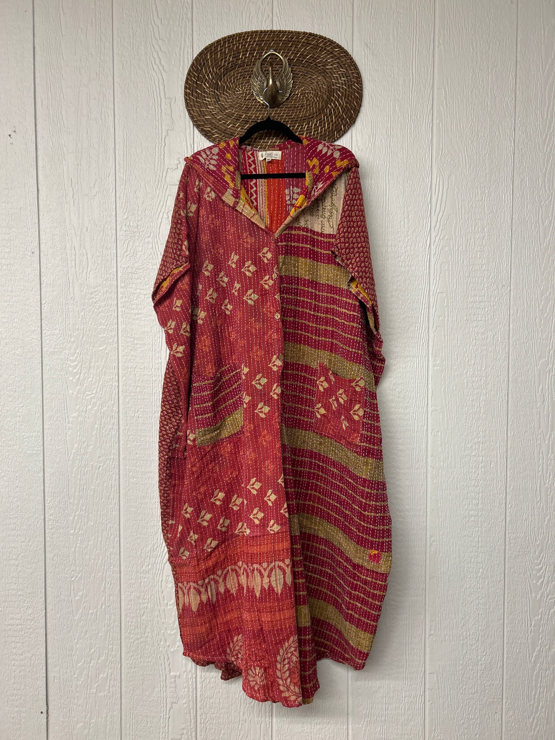 Made from our hand Kantha stitched cotton sari, this one piece wonder features a hood, front button-down closure, pockets, and super flowy pant legs..