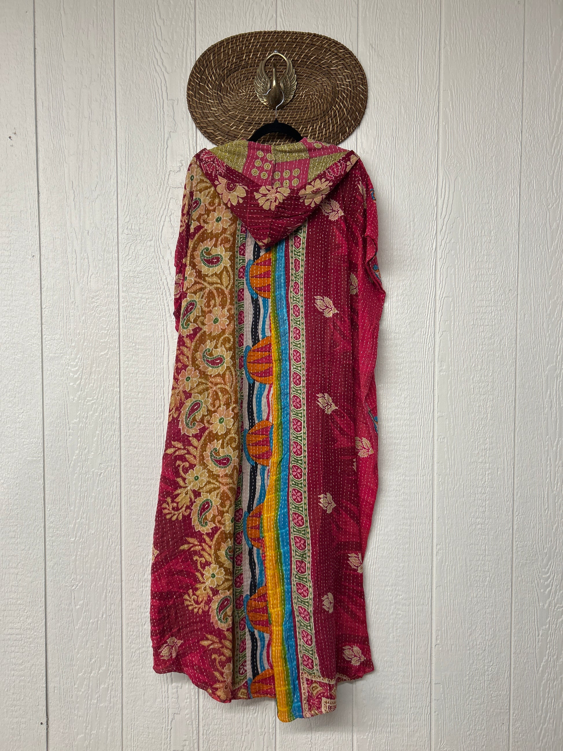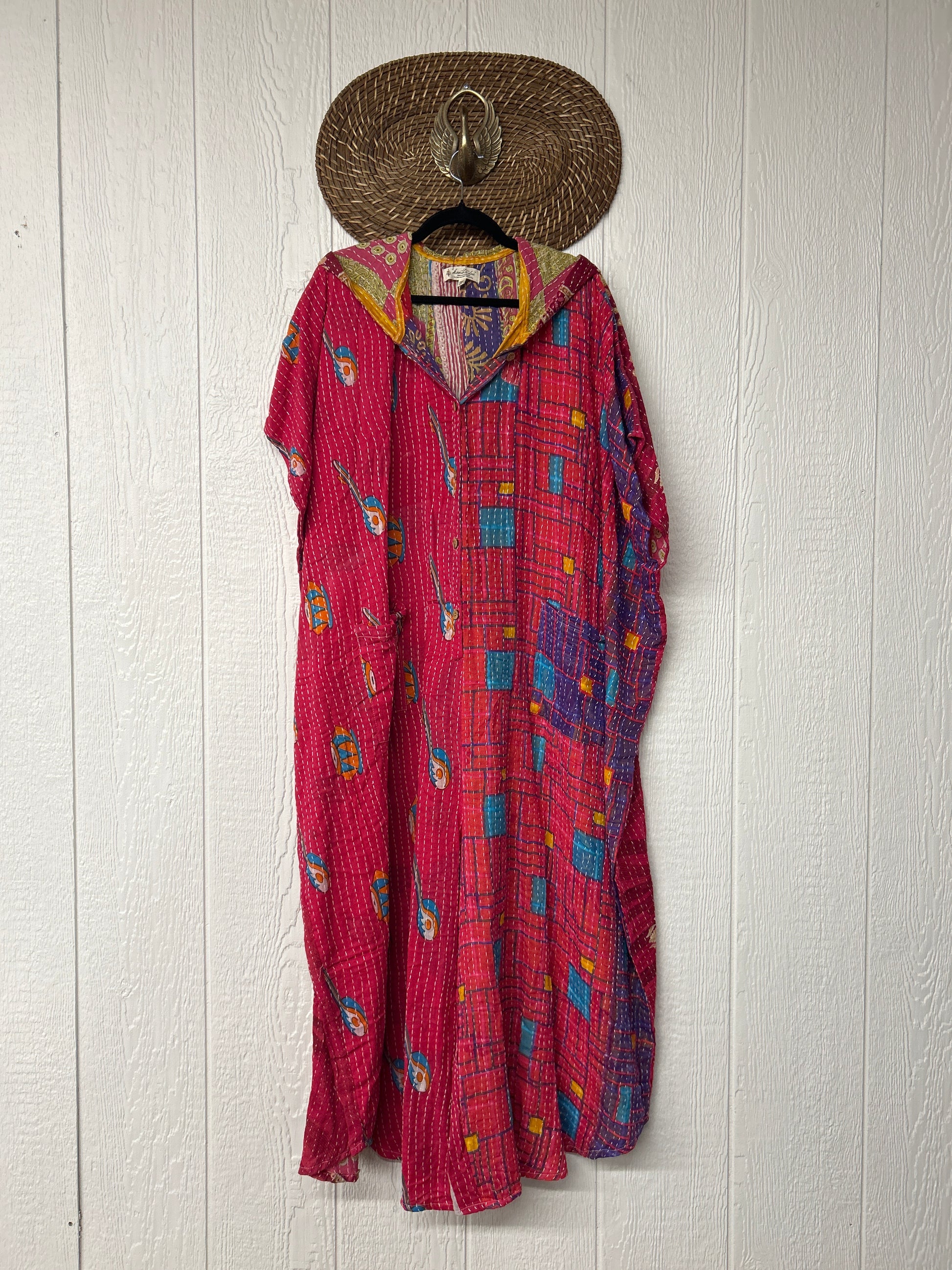 Made from our hand Kantha stitched cotton sari, this one piece wonder features a hood, front button-down closure, pockets, and super flowy pant legs..