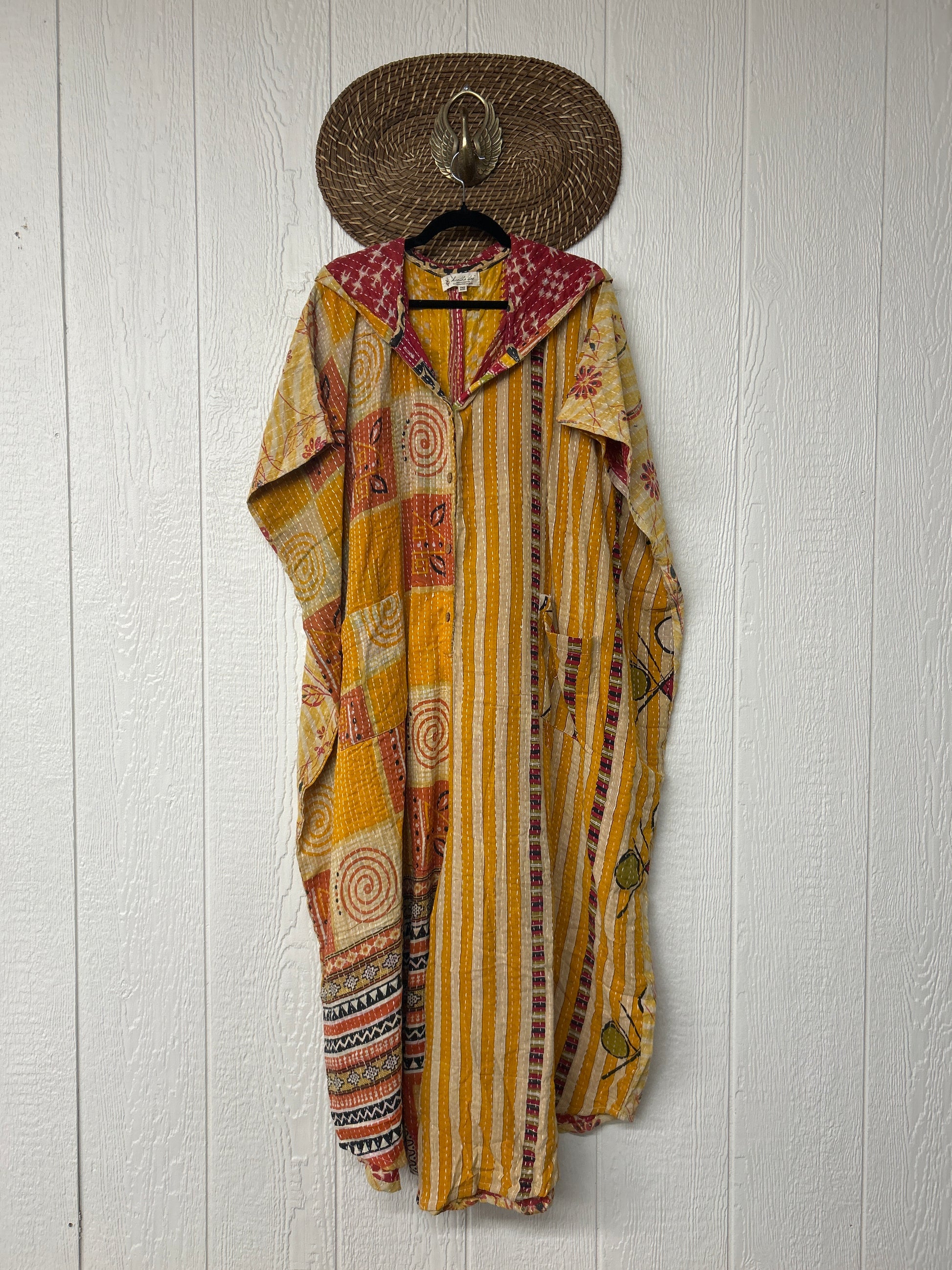 Made from our hand Kantha stitched cotton sari, this one piece wonder features a hood, front button-down closure, pockets, and super flowy pant legs..