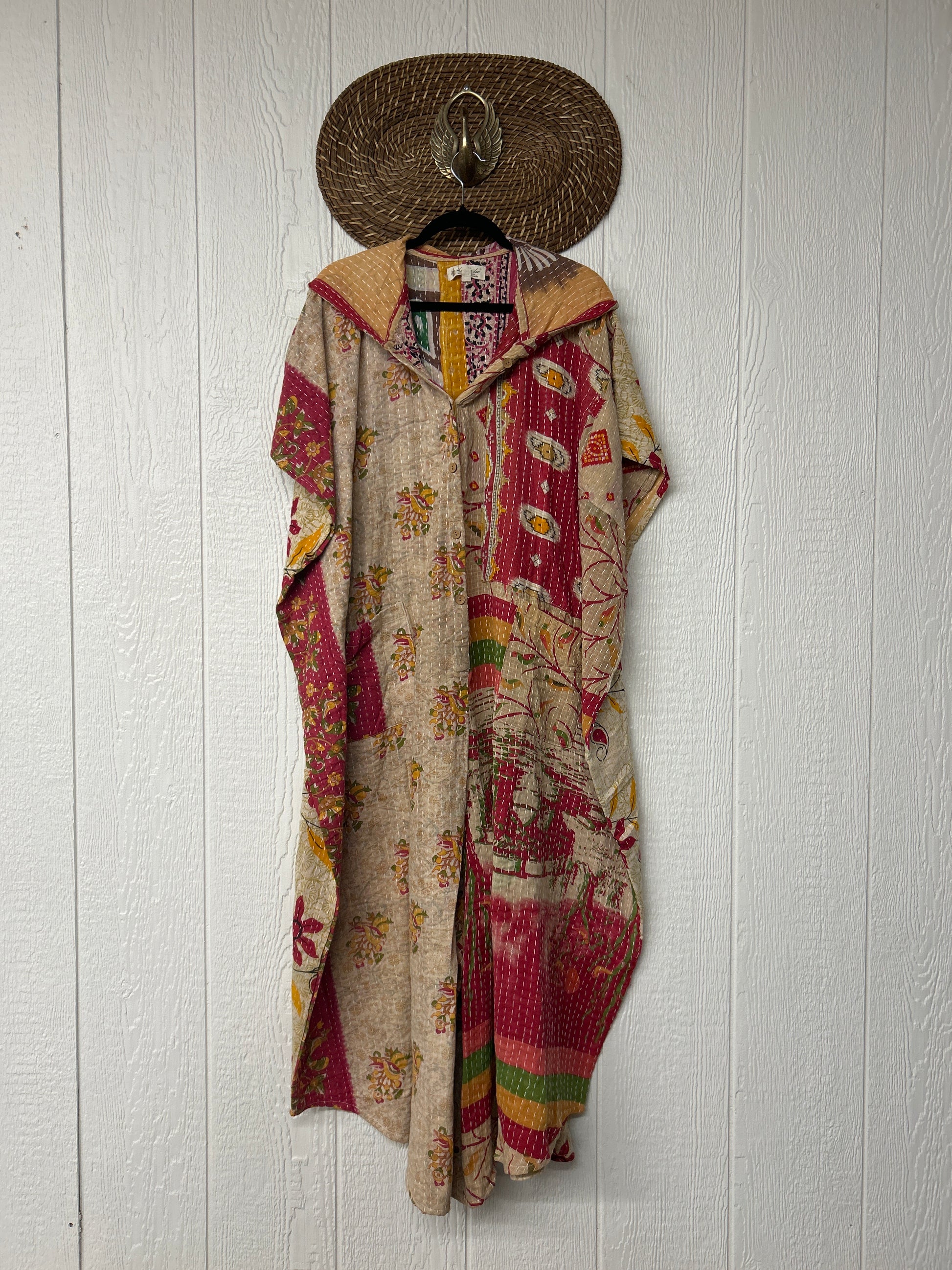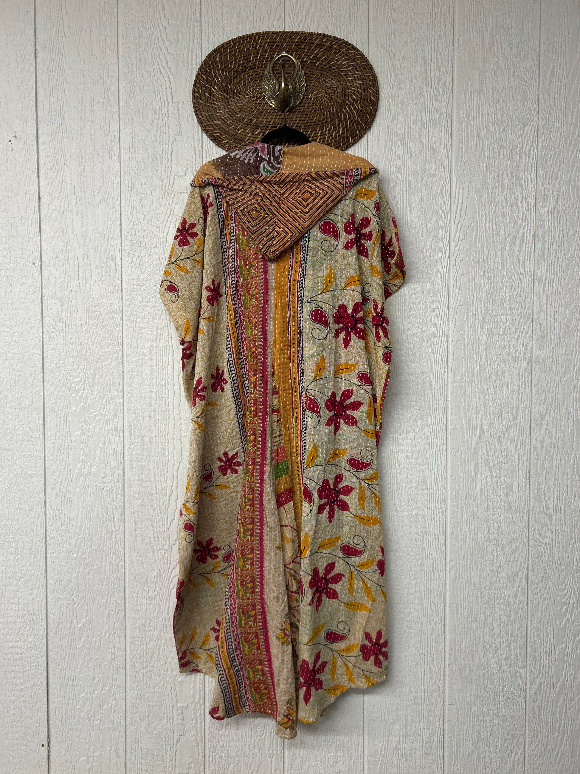 Made from our hand Kantha stitched cotton sari, this one piece wonder features a hood, front button-down closure, pockets, and super flowy pant legs..
