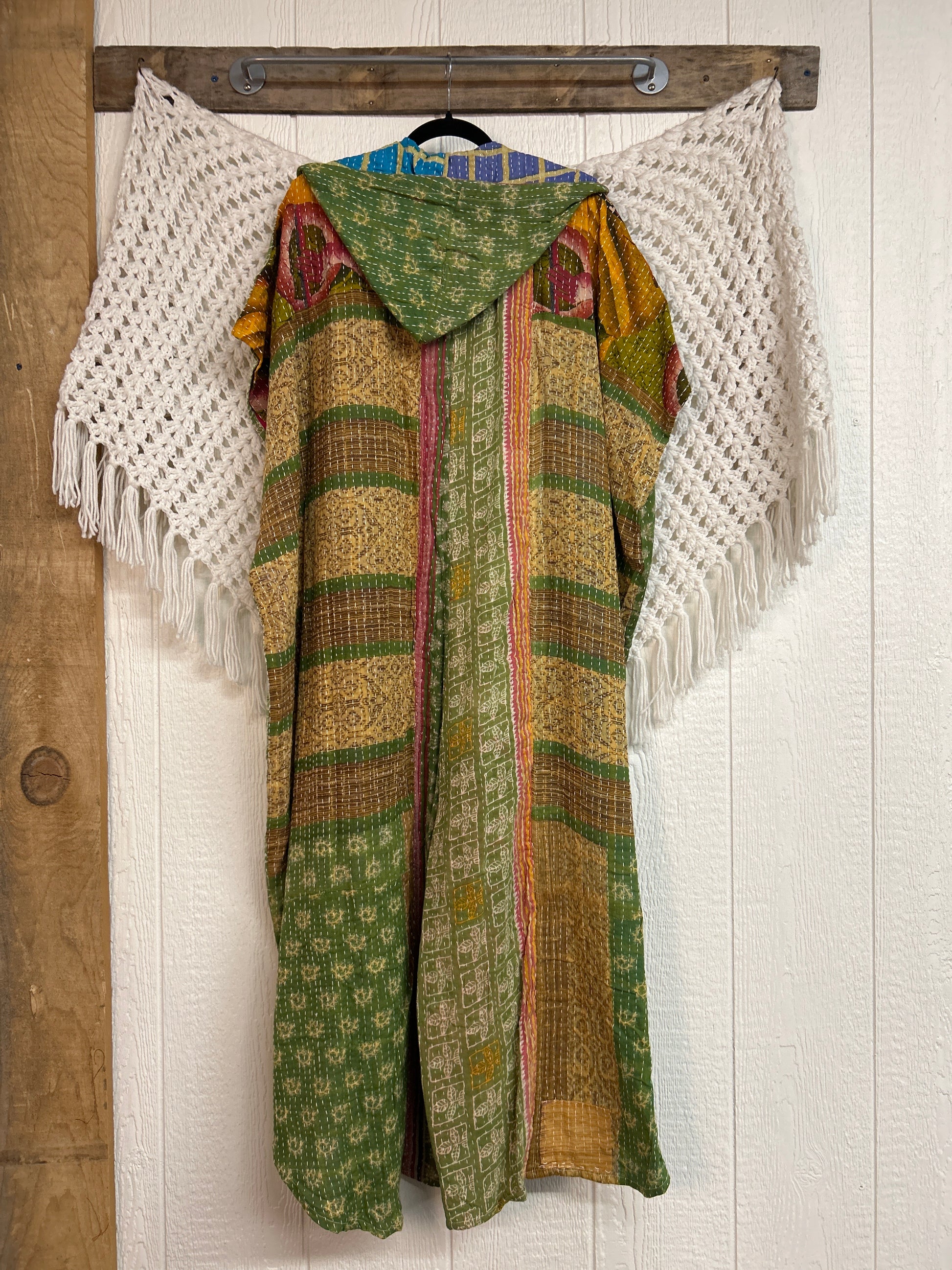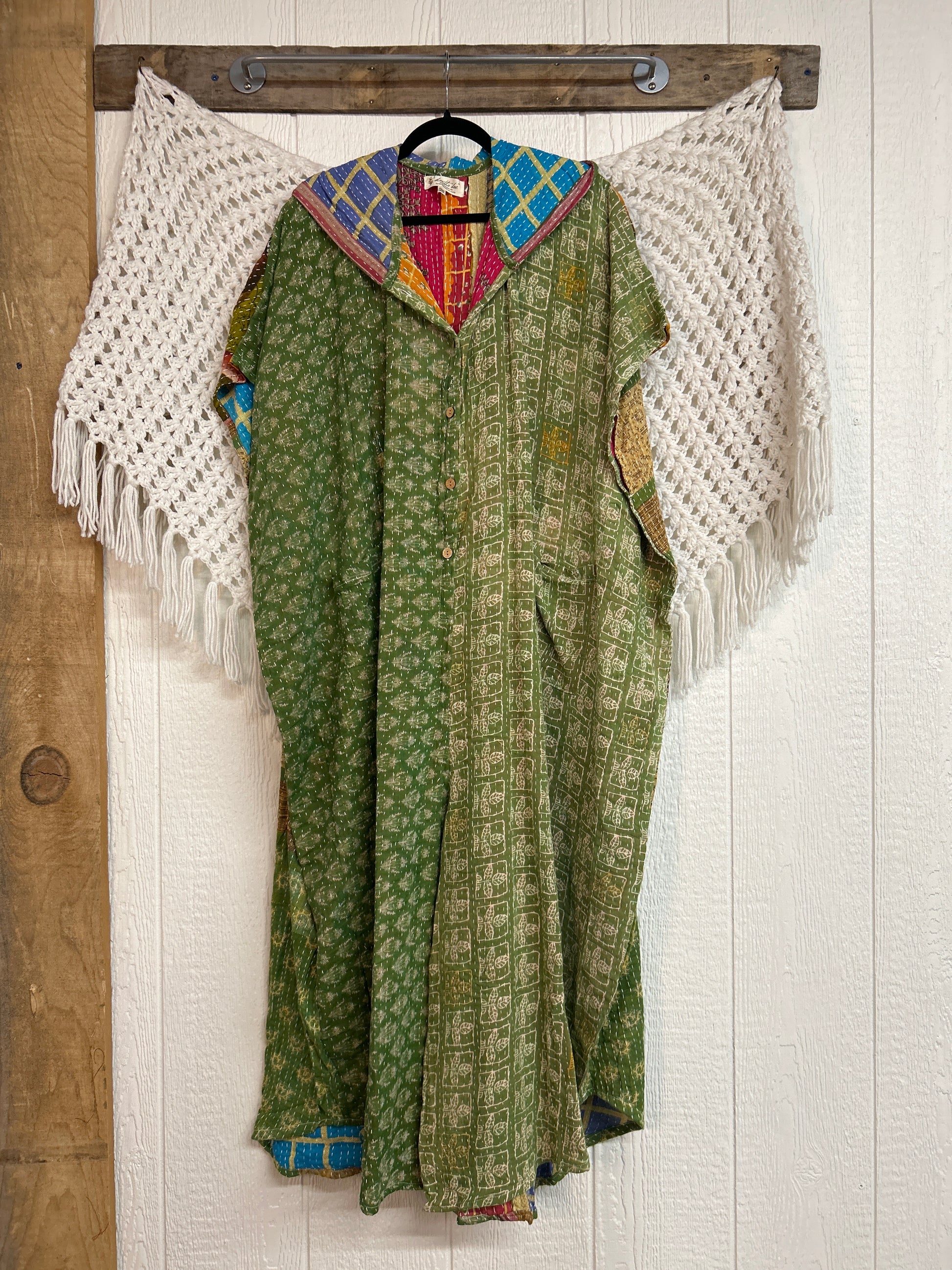 Disclosure: Our vintage styles have lived a full life before becoming the designs in our shop. Fabrics may have small threads or holes in the layers. Color inconsistency or small stains may be present. The saris are sewn together and extend the life of each design. Imperfections should be celebrated