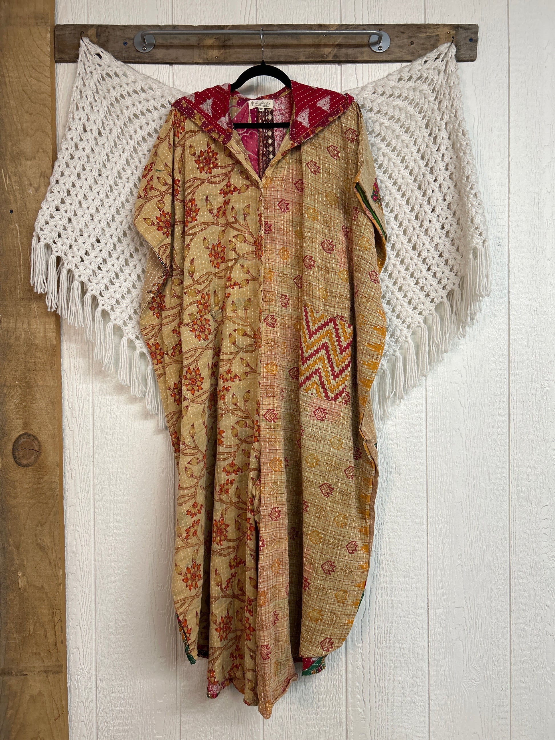 Disclosure: Our vintage styles have lived a full life before becoming the designs in our shop. Fabrics may have small threads or holes in the layers. Color inconsistency or small stains may be present. The saris are sewn together and extend the life of each design. Imperfections should be celebrated