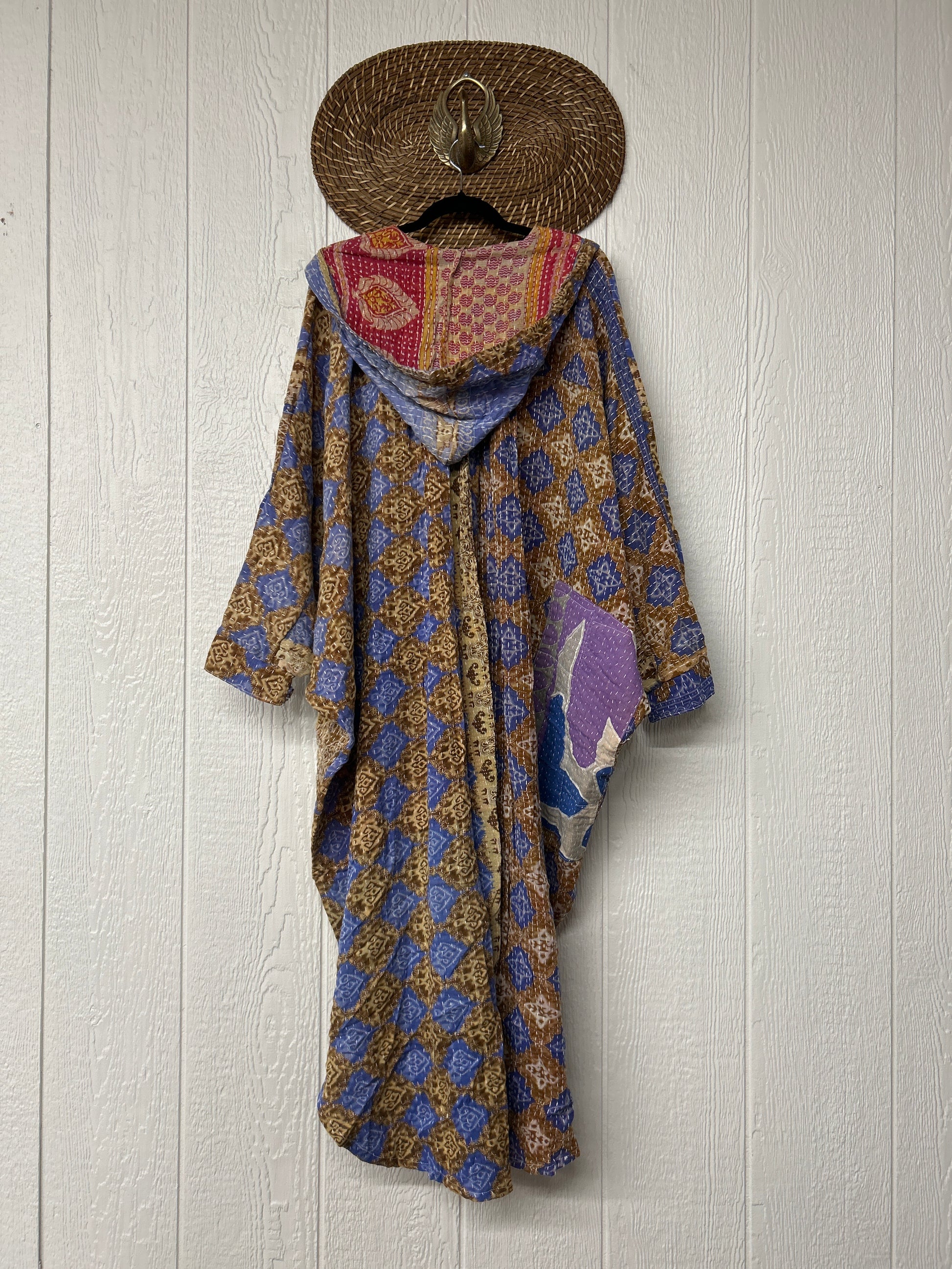 Made from our hand kantha stitched vintage cotton sari, this piece of wearable art features a Button-down opening with functional buttons, slouchy outer pockets, billowy sleeves, a rounded hemline and a vibey hood. The perfect maxi to compliment your favorite kantha pants or bell bottoms.