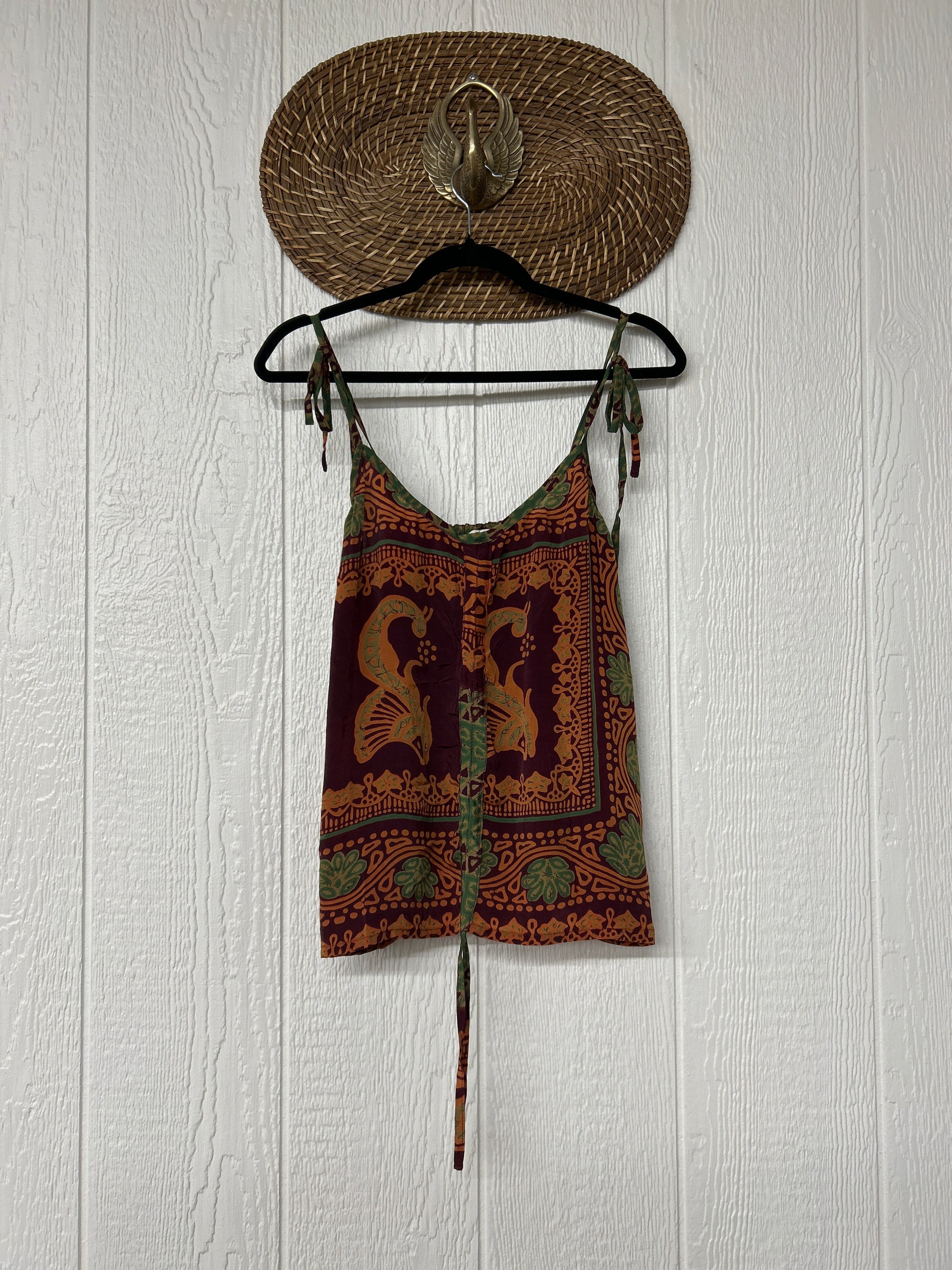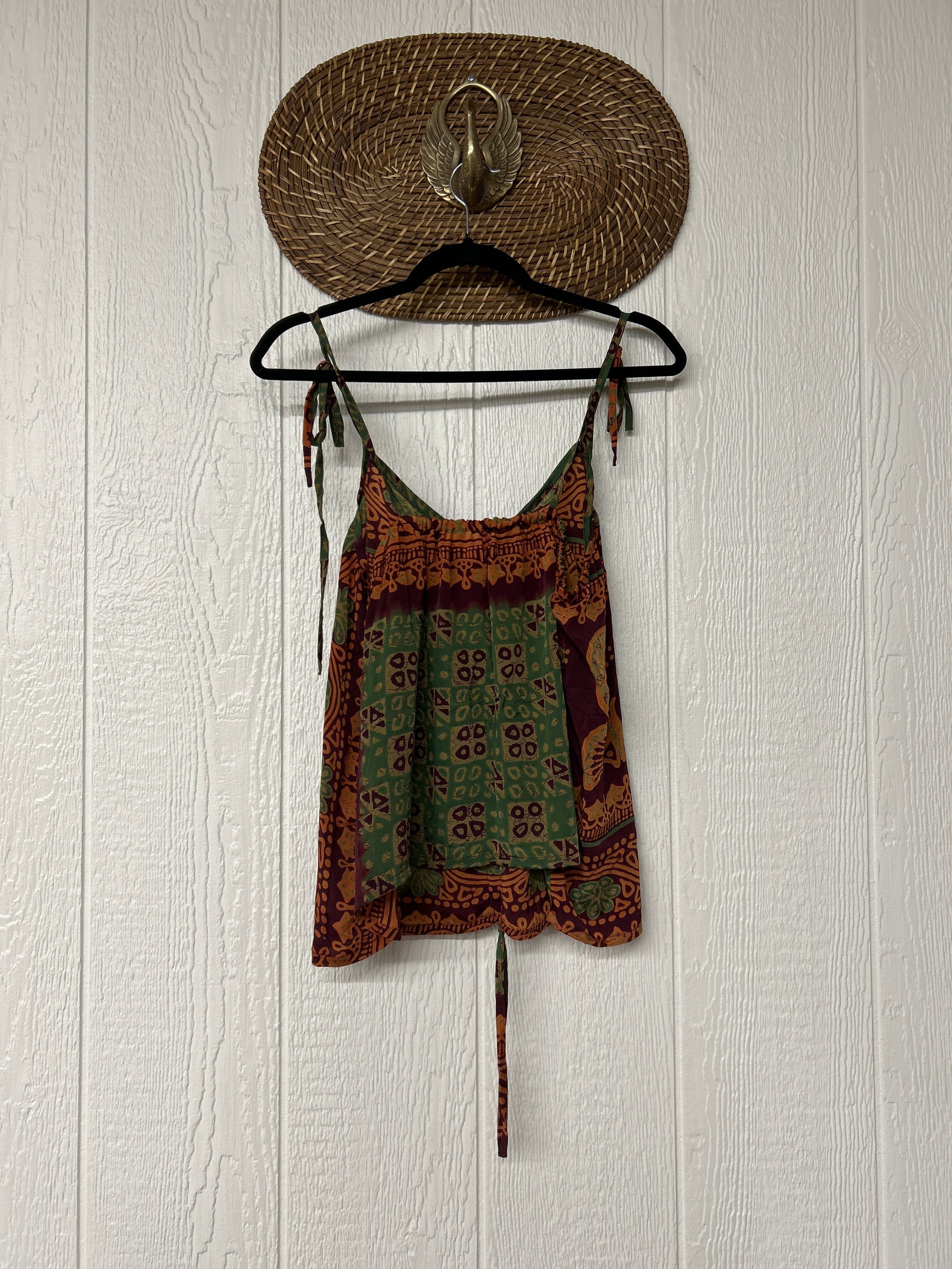 Our Rasgulla Butterfly Tank Top Features adjustable tie straps and a cinch front tie in the front which makes the top customizable for any of your favorite bottoms. Crafted from our ultra lux rasgulla silk this dreamy top is bound to be your new vibey go to! The back also features stretchy elastic for added comfort.