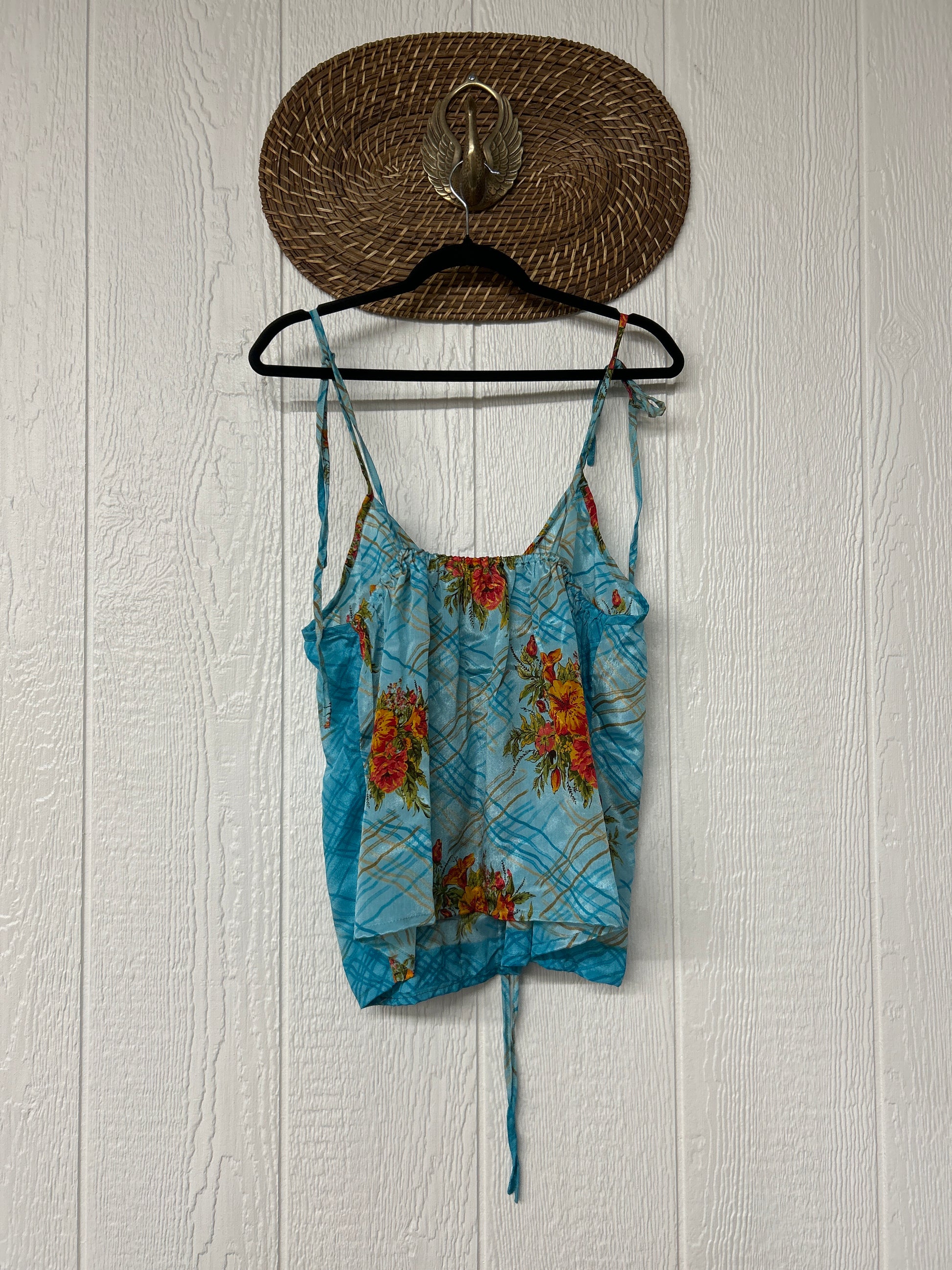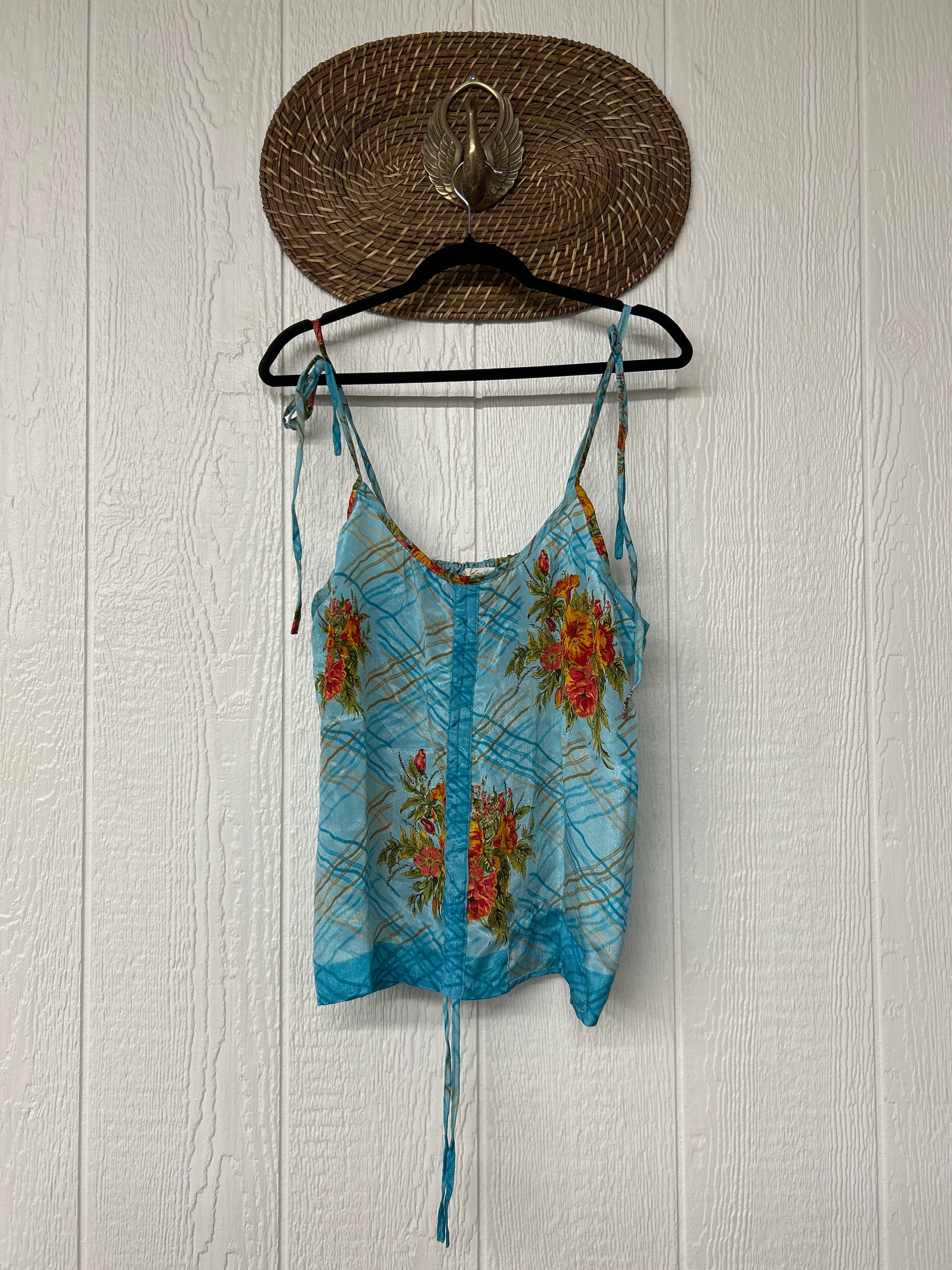 Our Rasgulla Butterfly Tank Top Features adjustable tie straps and a cinch front tie in the front which makes the top customizable for any of your favorite bottoms. Crafted from our ultra lux rasgulla silk this dreamy top is bound to be your new vibey go to! The back also features stretchy elastic for added comfort.