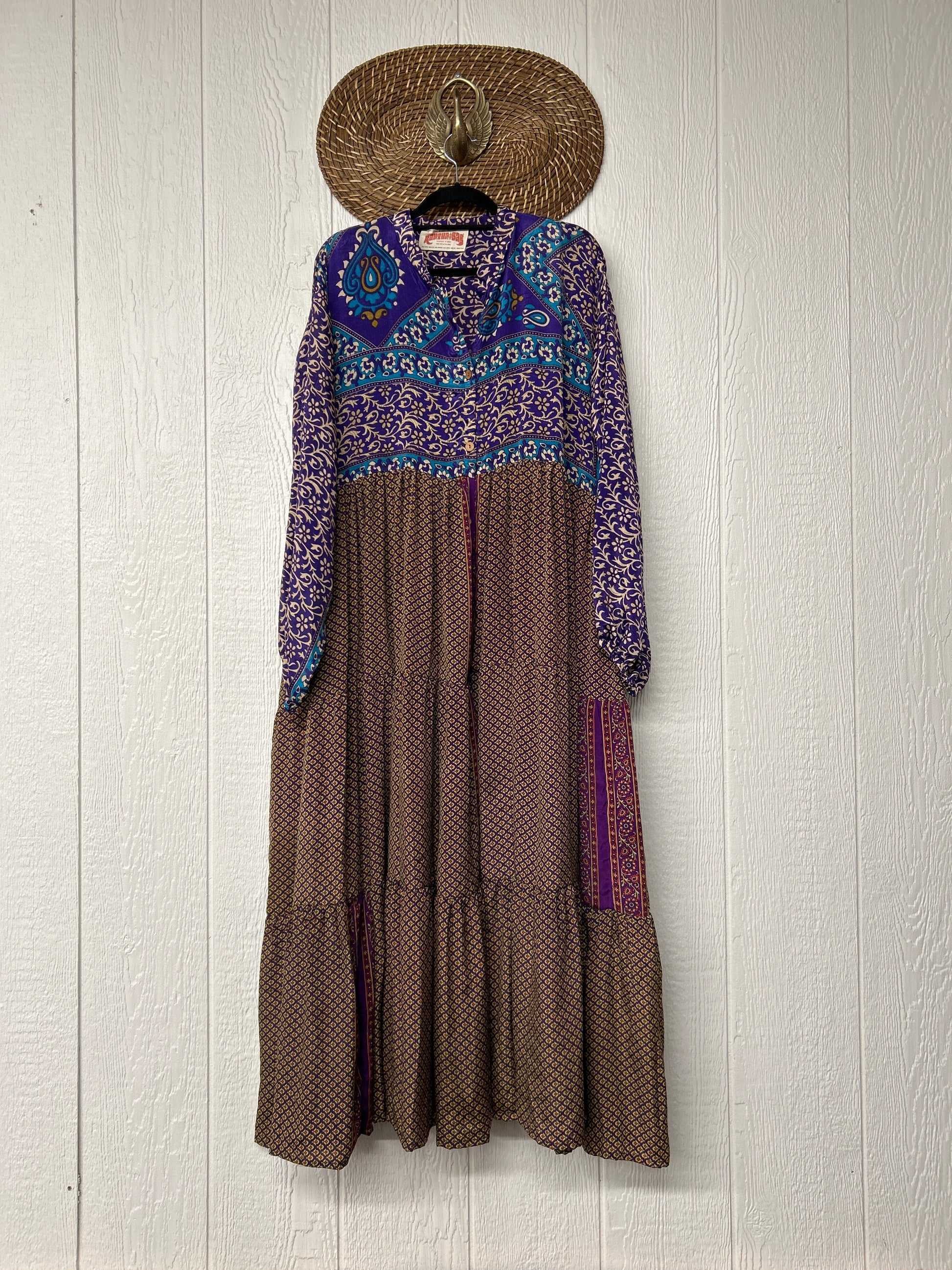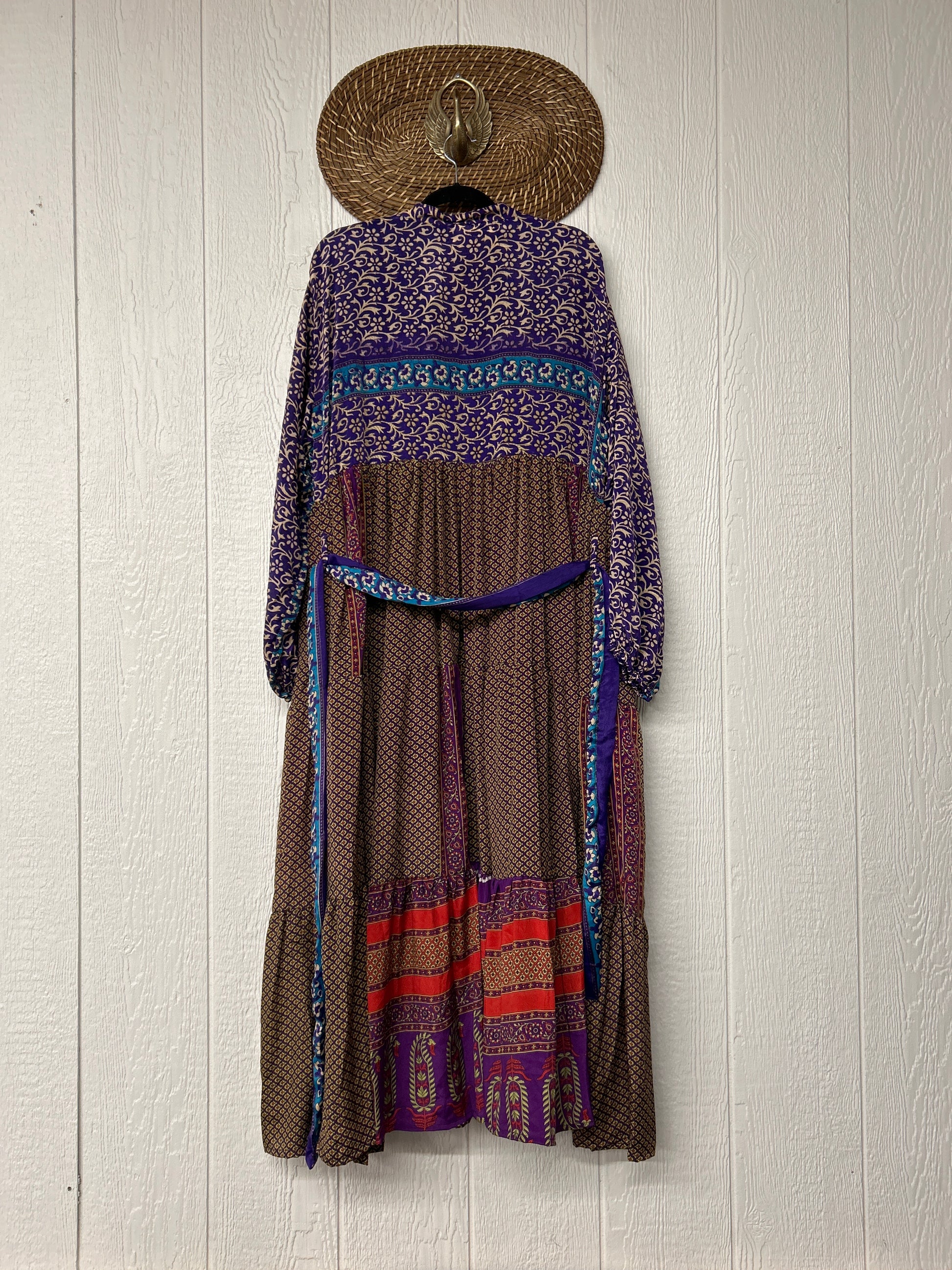 Disclosure: Our vintage styles have lived a full life before becoming the designs in our shop. Fabrics may have small threads or holes in the layers. Color inconsistency or small stains may be present. The saris are sewn together and extend the life of each design.