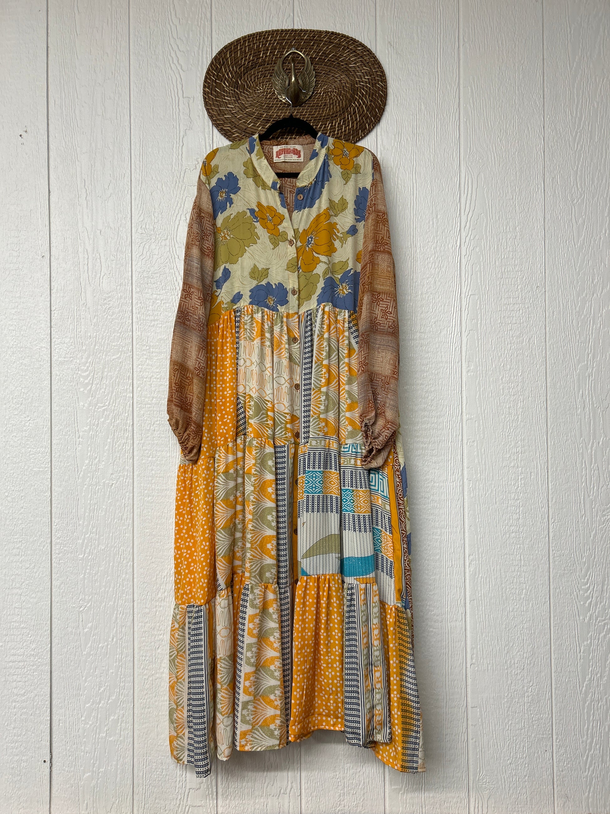 Disclosure: Our vintage styles have lived a full life before becoming the designs in our shop. Fabrics may have small threads or holes in the layers. Color inconsistency or small stains may be present. The saris are sewn together and extend the life of each design.