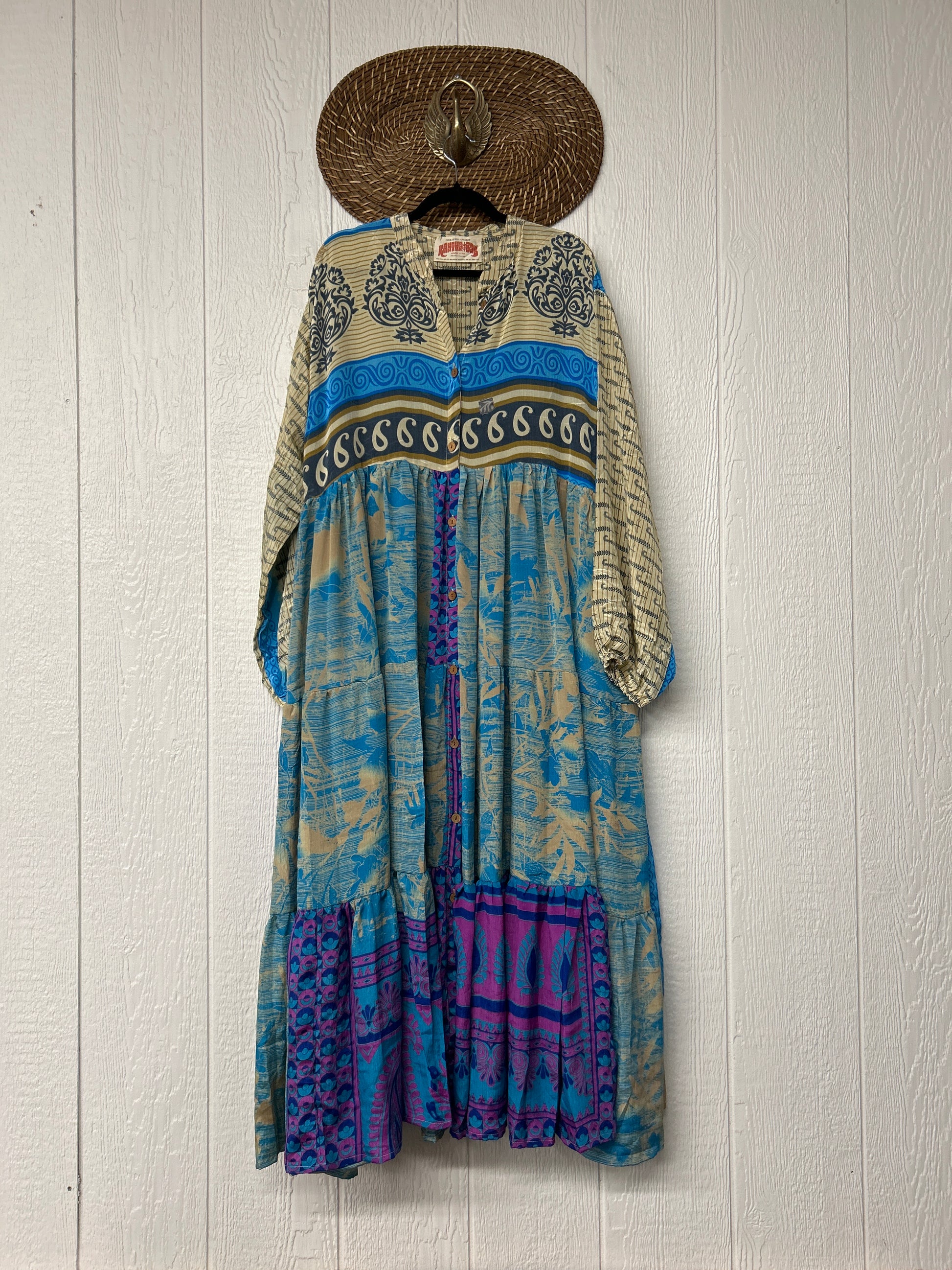 Disclosure: Our vintage styles have lived a full life before becoming the designs in our shop. Fabrics may have small threads or holes in the layers. Color inconsistency or small stains may be present. The saris are sewn together and extend the life of each design.