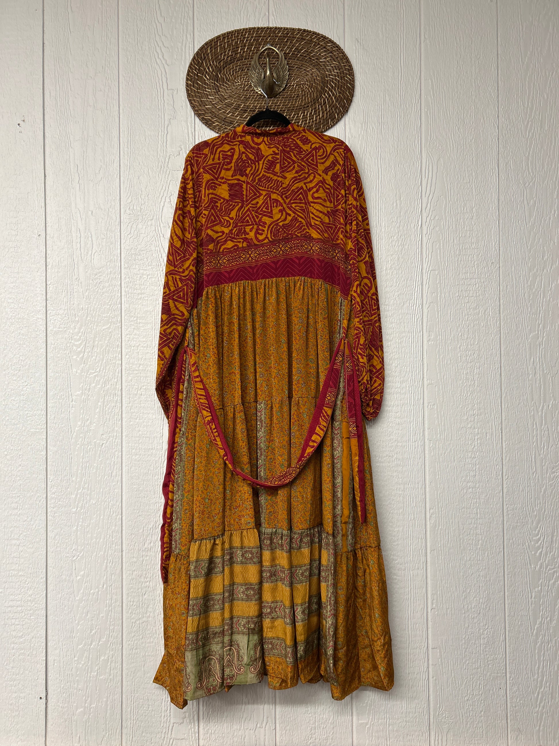 Disclosure: Our vintage styles have lived a full life before becoming the designs in our shop. Fabrics may have small threads or holes in the layers. Color inconsistency or small stains may be present. The saris are sewn together and extend the life of each design.