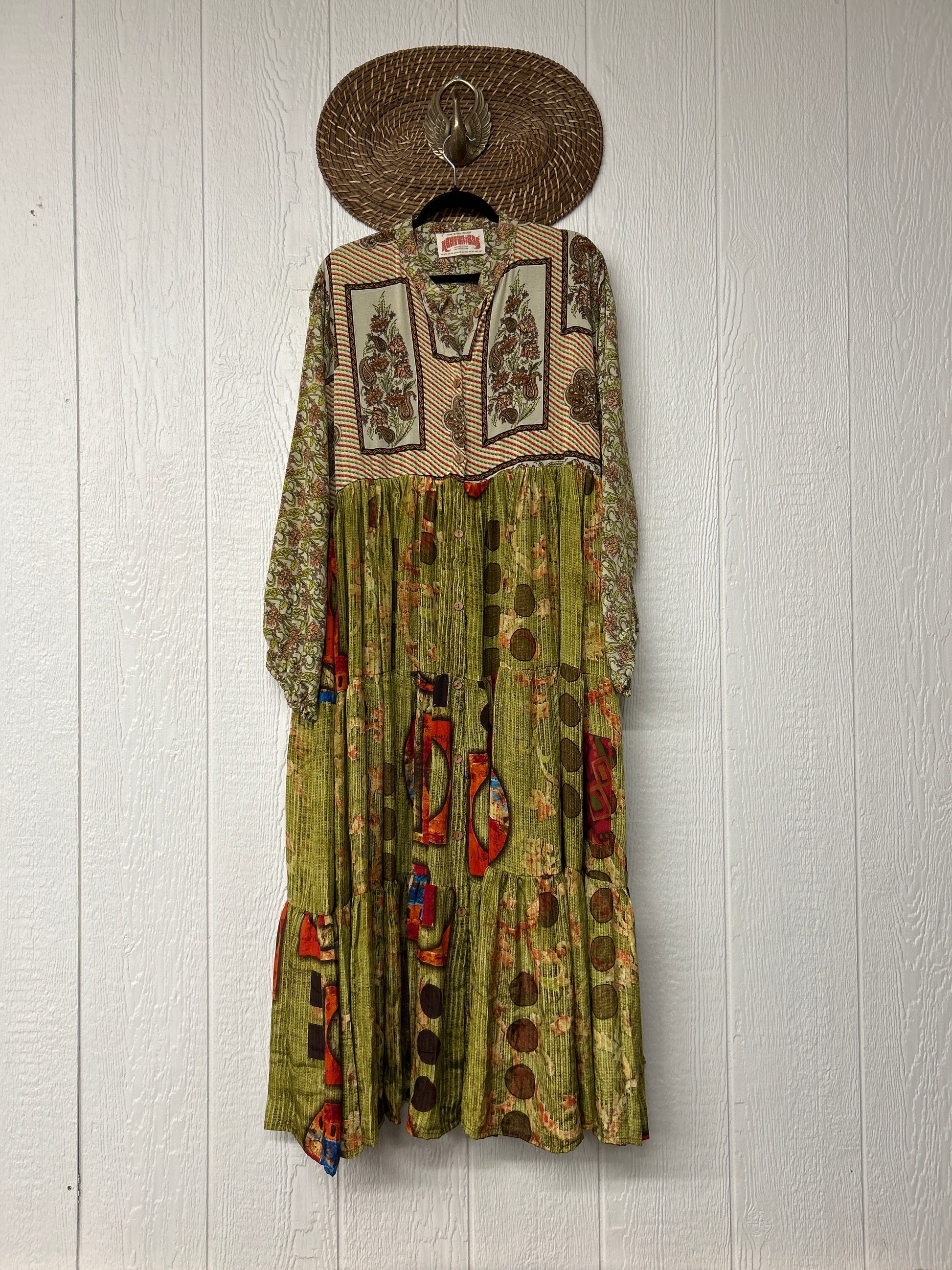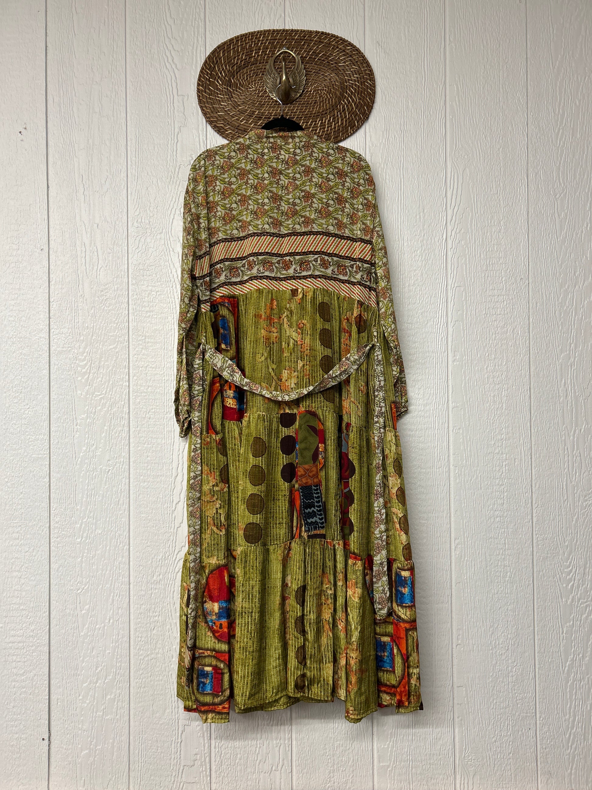 Disclosure: Our vintage styles have lived a full life before becoming the designs in our shop. Fabrics may have small threads or holes in the layers. Color inconsistency or small stains may be present. The saris are sewn together and extend the life of each design.