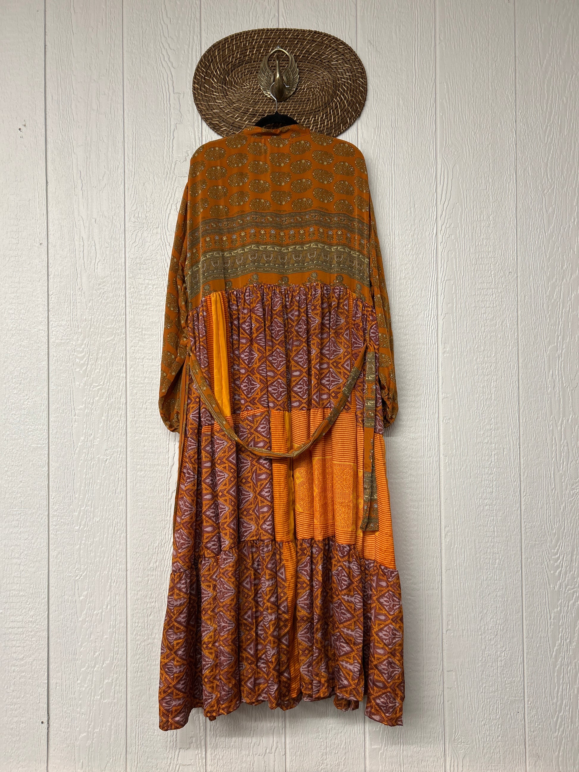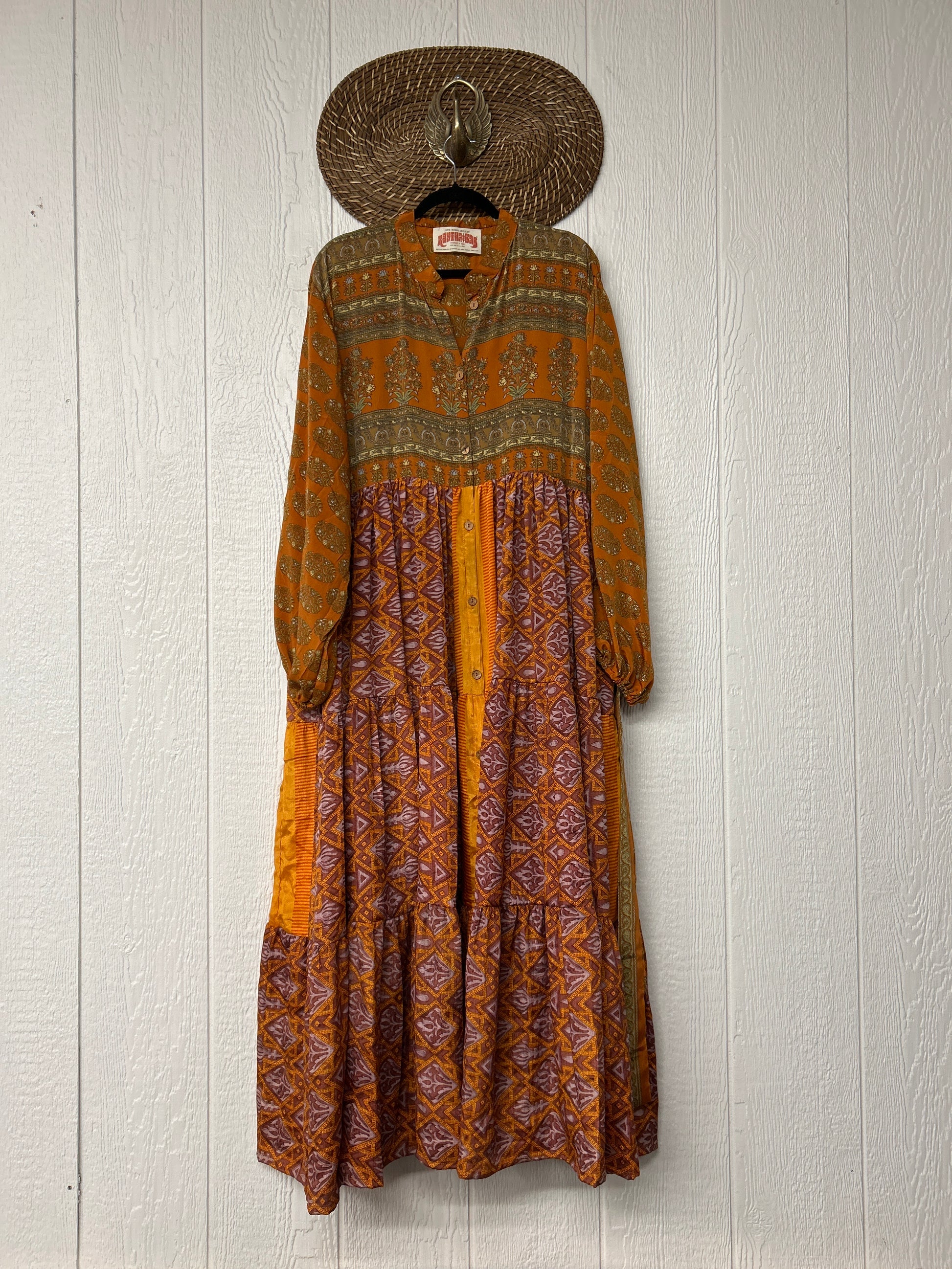 Disclosure: Our vintage styles have lived a full life before becoming the designs in our shop. Fabrics may have small threads or holes in the layers. Color inconsistency or small stains may be present. The saris are sewn together and extend the life of each design.