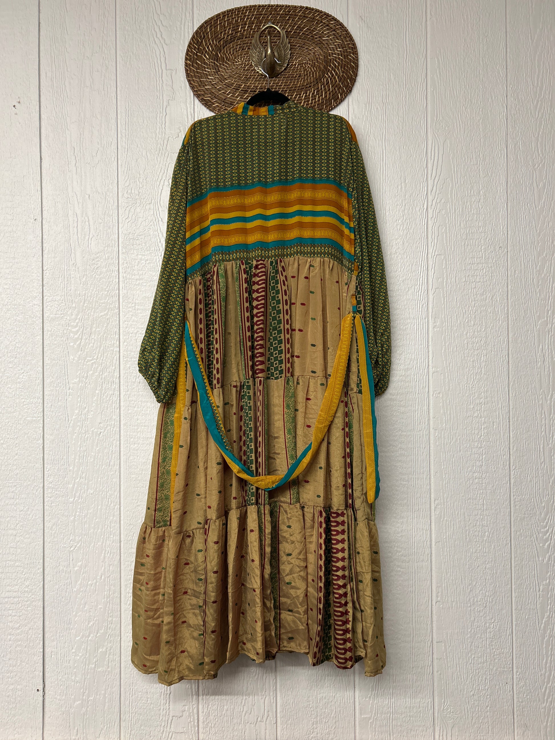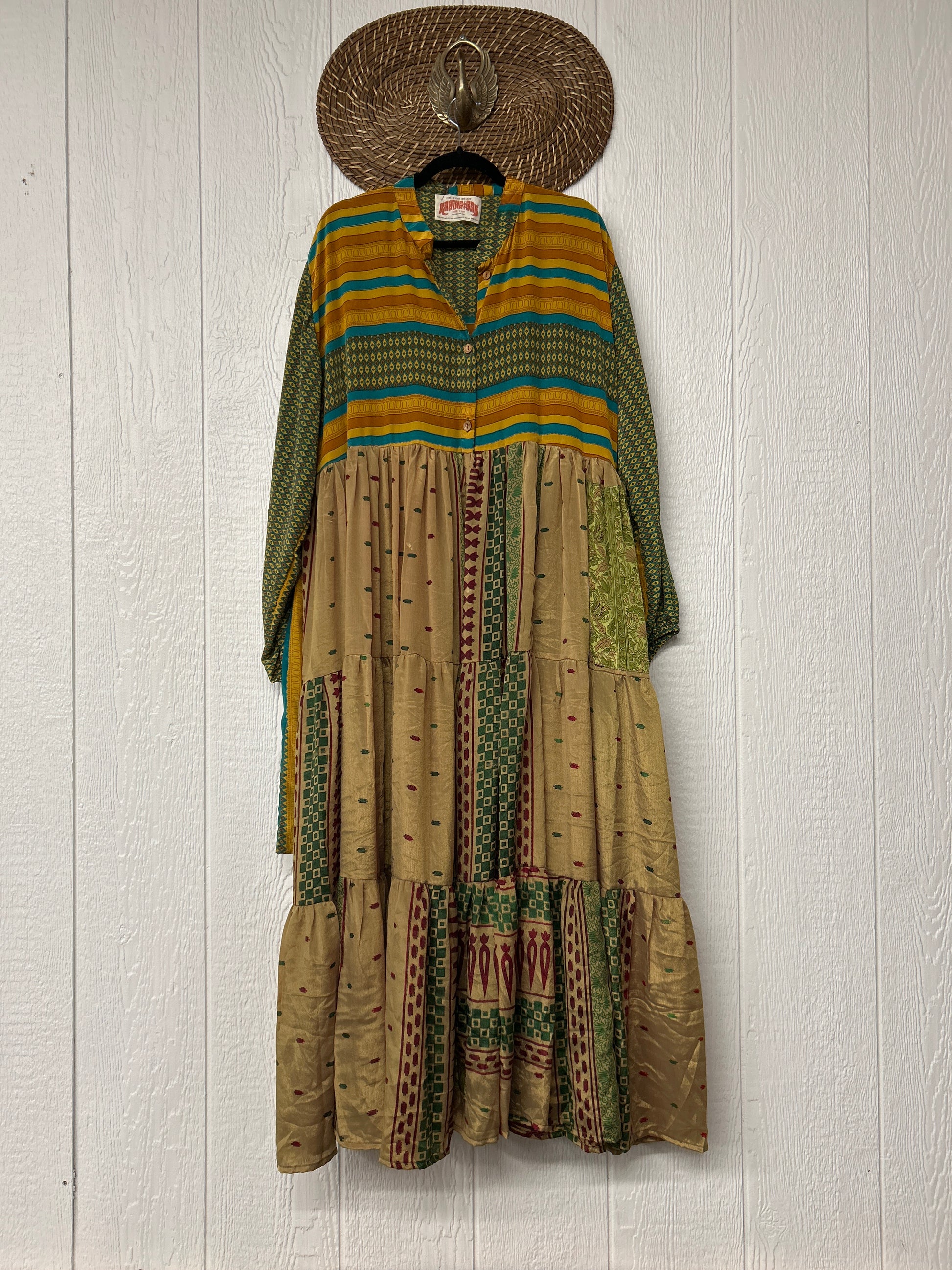 Disclosure: Our vintage styles have lived a full life before becoming the designs in our shop. Fabrics may have small threads or holes in the layers. Color inconsistency or small stains may be present. The saris are sewn together and extend the life of each design.