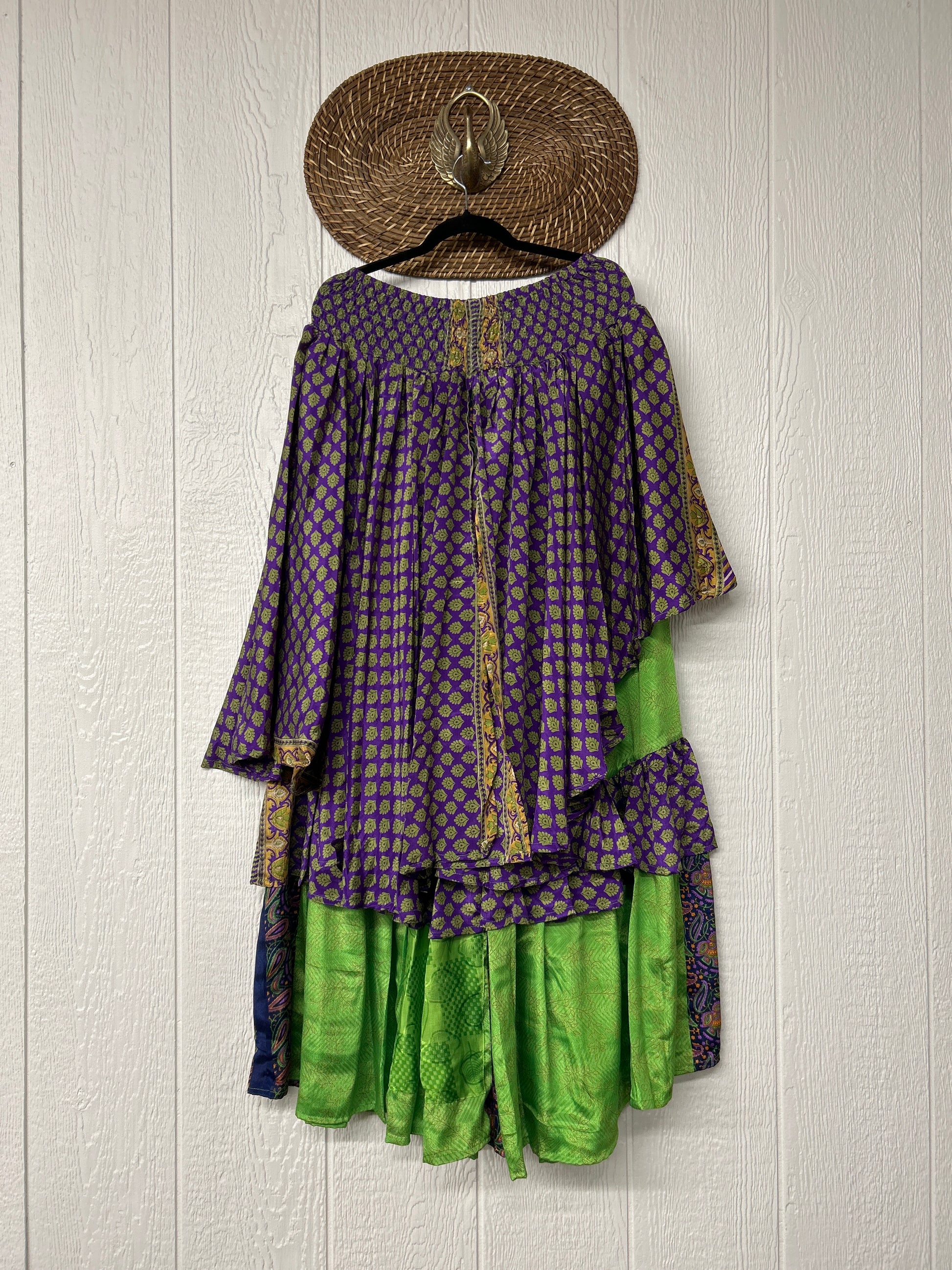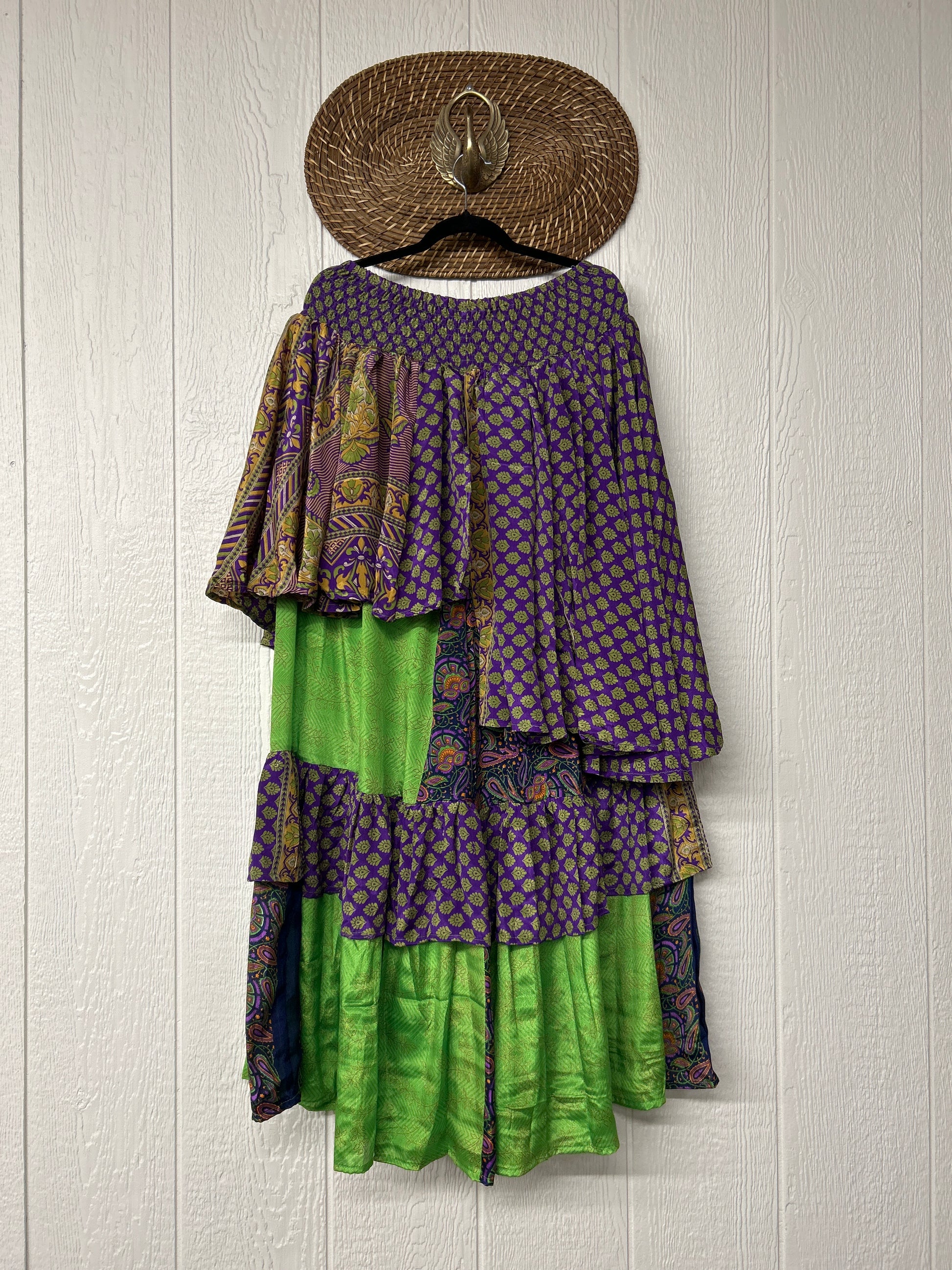 Crafted from vintage rasgulla sari these ethereal pants features stretchy waist, super wide legs, double tier hem and a skirt layer. these pants will make you want to dance! One size, recommended up to size 22/24 Crafted and sewn by families in a small village in Northern India providing work and a fair living. This product should be hand washed and line dried for longest life. For softness, fluff in the dryer on low heat after it has dried from hand washing. Disclosure: Our vintage styles have lived a full life before becoming the designs in our shop. Fabrics may have small threads or holes in the layers. Color inconsistency or small stains may be present. The saris are sewn together and extend the life of each design. Imperfections should be celebrated.