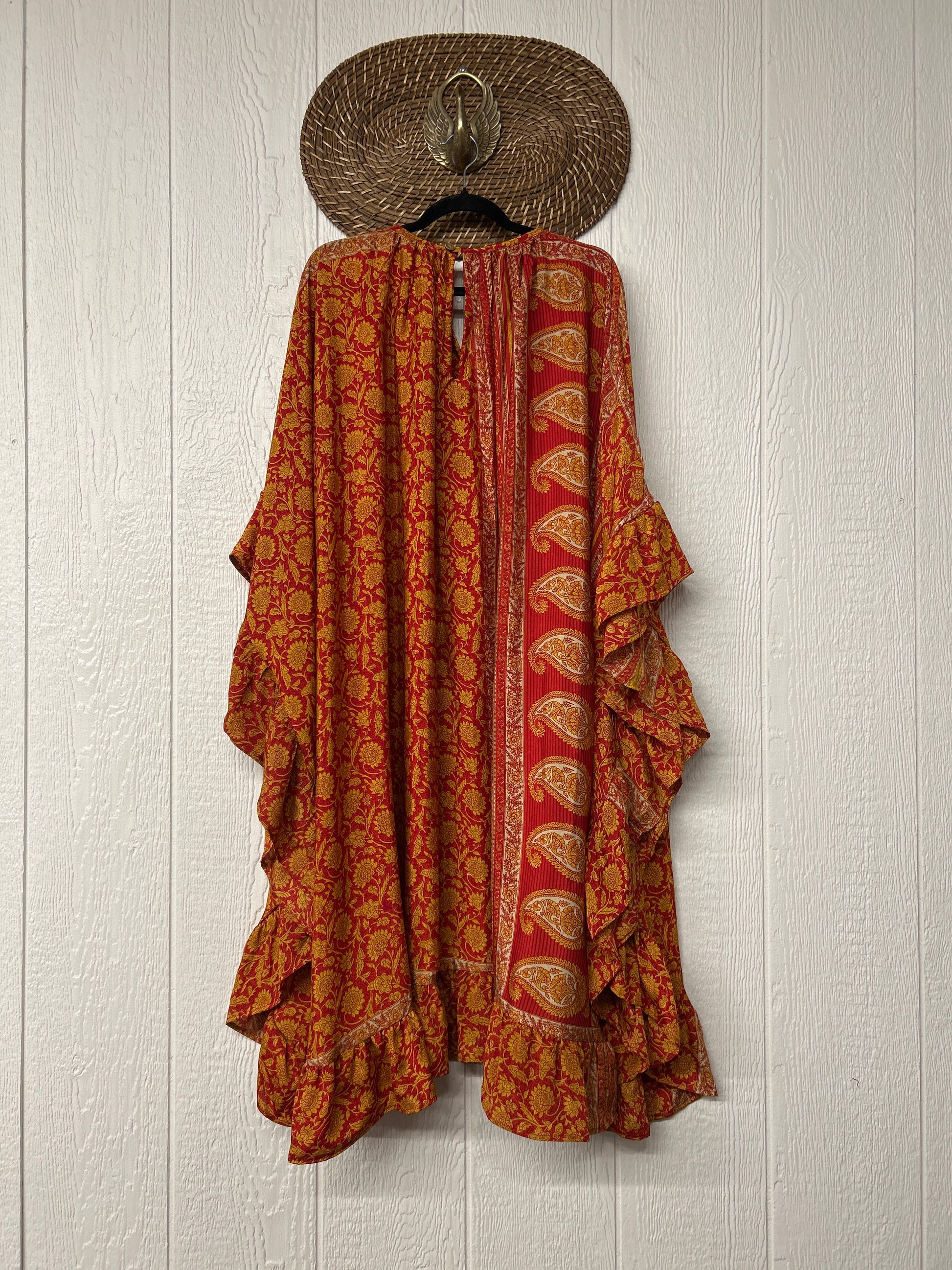 This dreamy muu is crafted from our ultra lux vintage rasgulla sari and features a button down placket and slouchy exterior pockets. Ruffles around the hem make this the ultimate rockstar layer that you can wear closed as a muu or open as a kimono!!