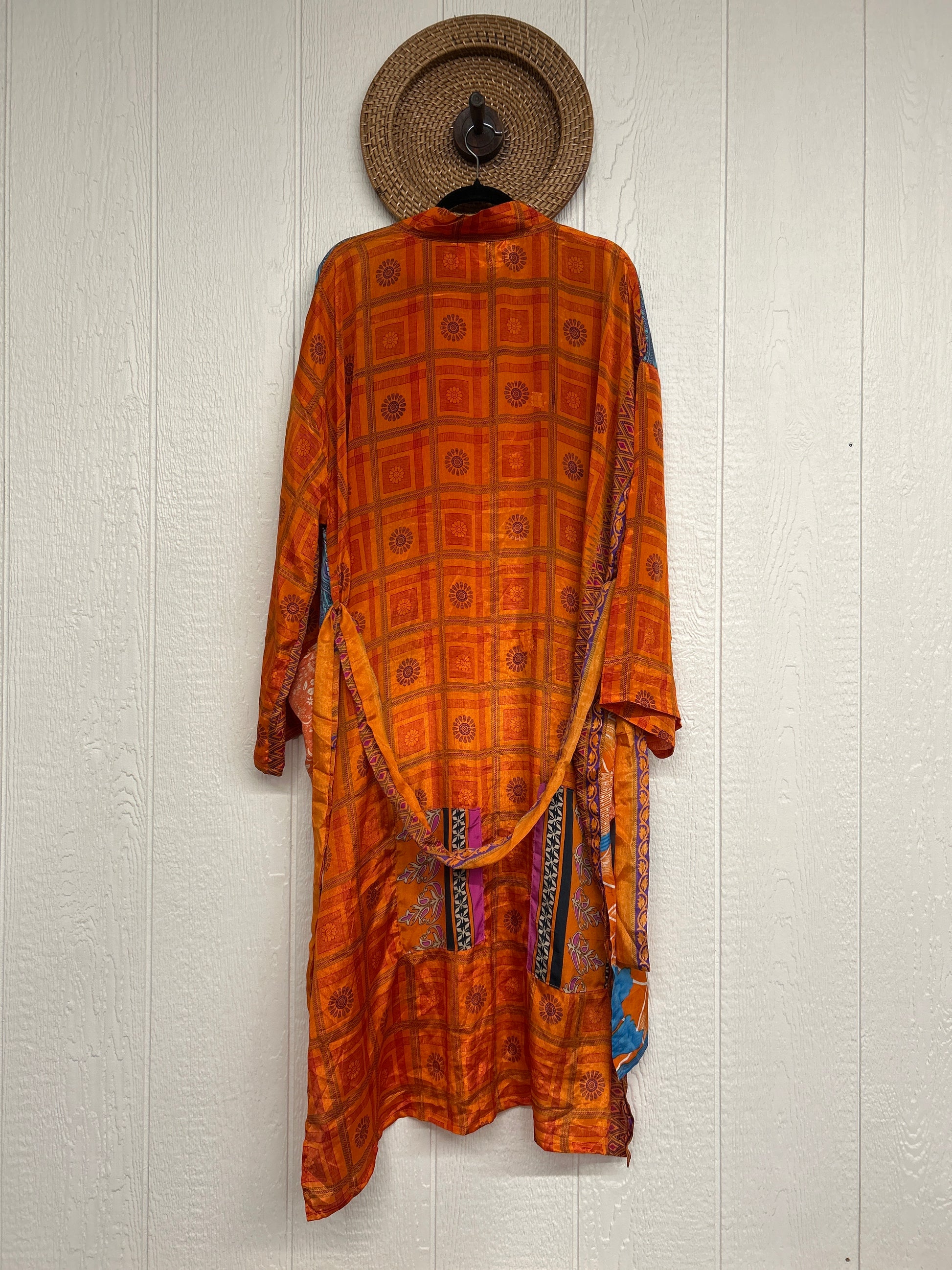 Disclosure: Our vintage styles have lived a full life before becoming the designs in our shop. Fabrics may have small threads or holes in the layers. Color inconsistency or small stains may be present. The saris are sewn together and extend the life of each design.