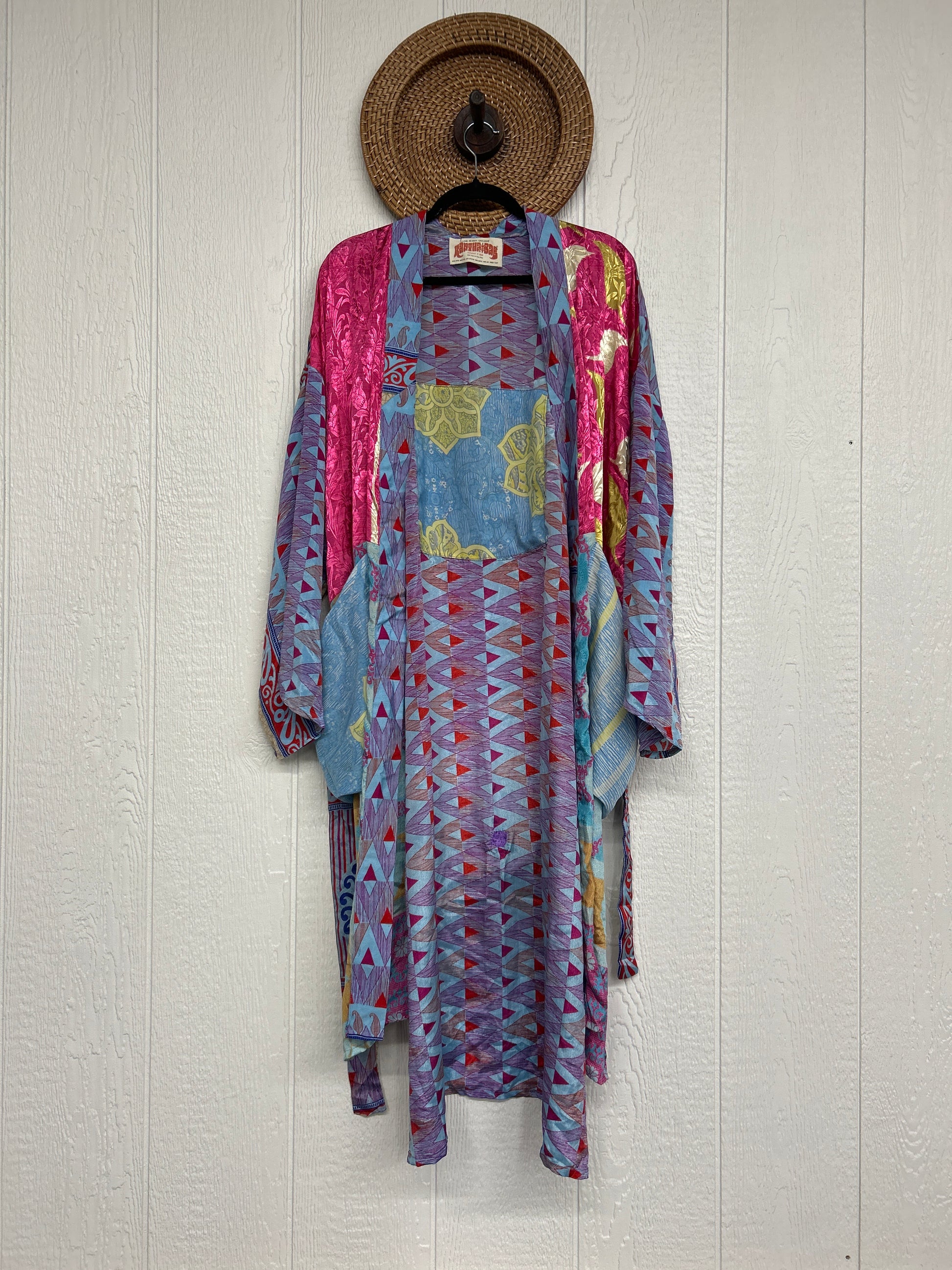 Made from our ultra lux vintage rasgulla sari this dreamy piece features slouchy pockets, a tie sash, and wide dreamy sleeves. Dress the Serenity Kimono up or down to create the ultimate vibe.
