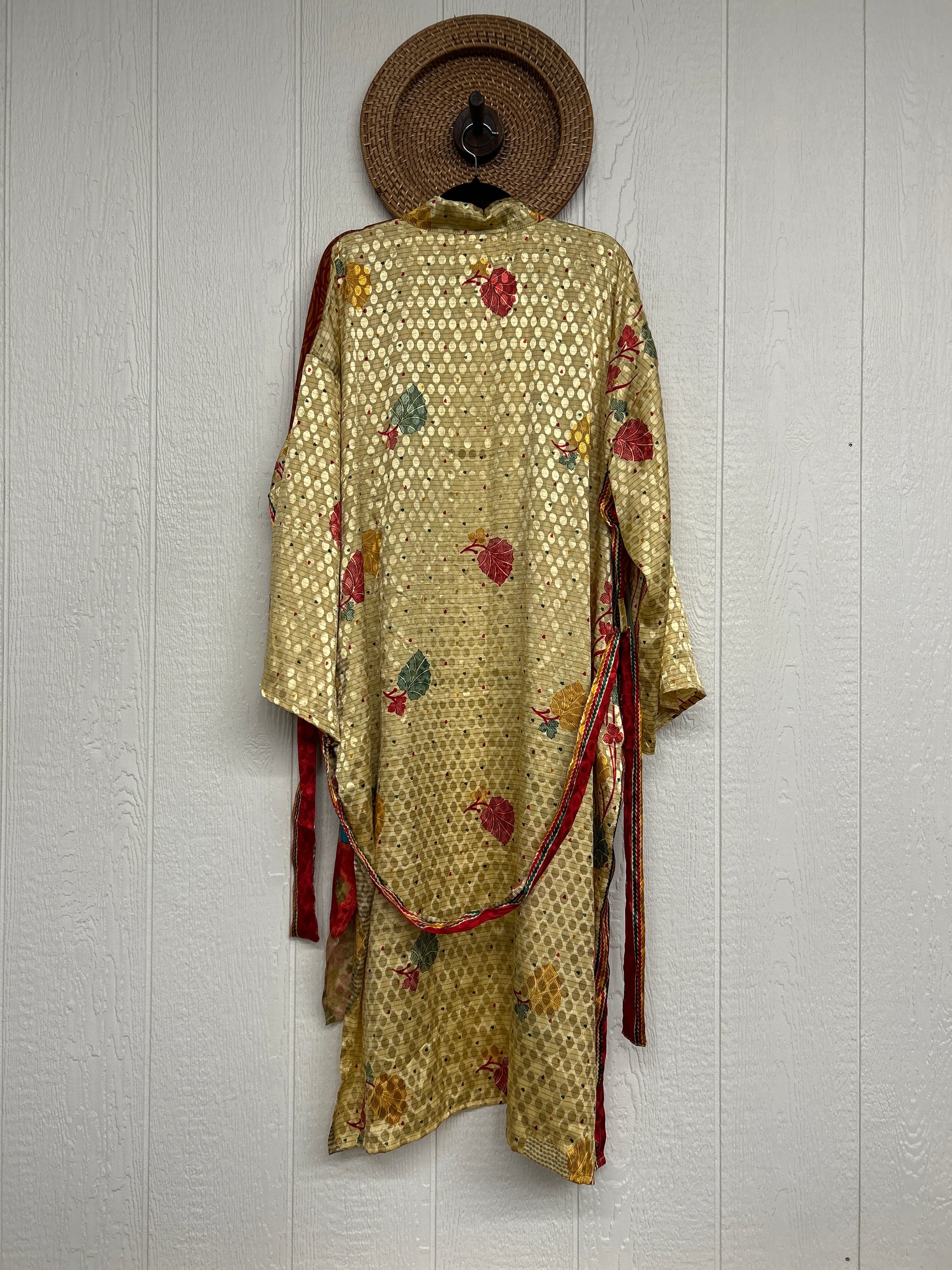 Made from our ultra lux vintage rasgulla sari this dreamy piece features slouchy pockets, a tie sash, and wide dreamy sleeves. Dress the Serenity Kimono up or down to create the ultimate vibe.