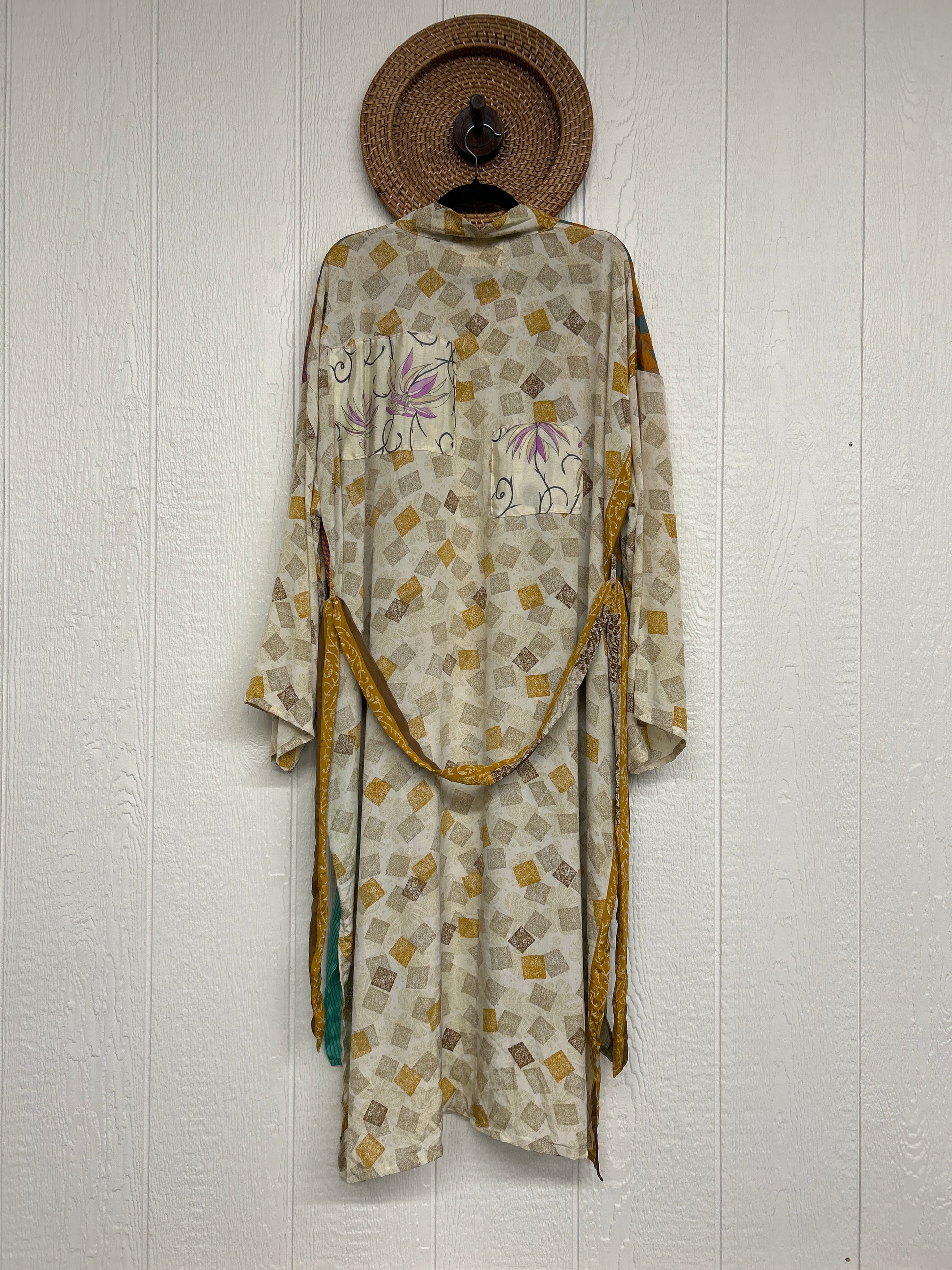 Made from our ultra lux vintage rasgulla sari this dreamy piece features slouchy pockets, a tie sash, and wide dreamy sleeves. Dress the Serenity Kimono up or down to create the ultimate vibe.