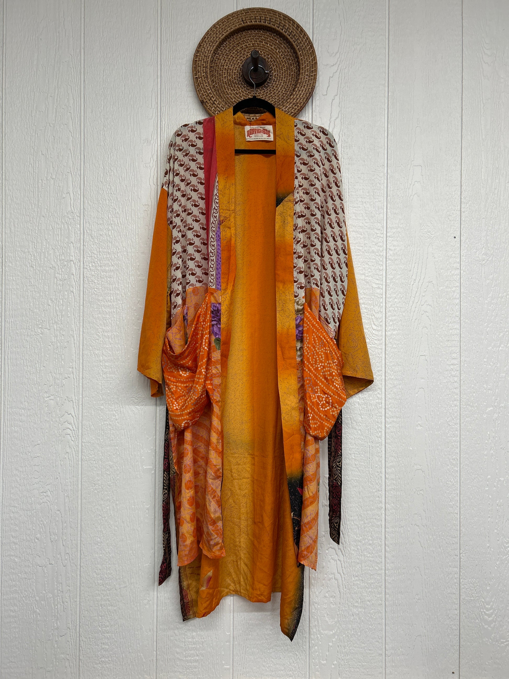 Made from our ultra lux vintage rasgulla sari this dreamy piece features slouchy pockets, a tie sash, and wide dreamy sleeves. Dress the Serenity Kimono up or down to create the ultimate vibe.