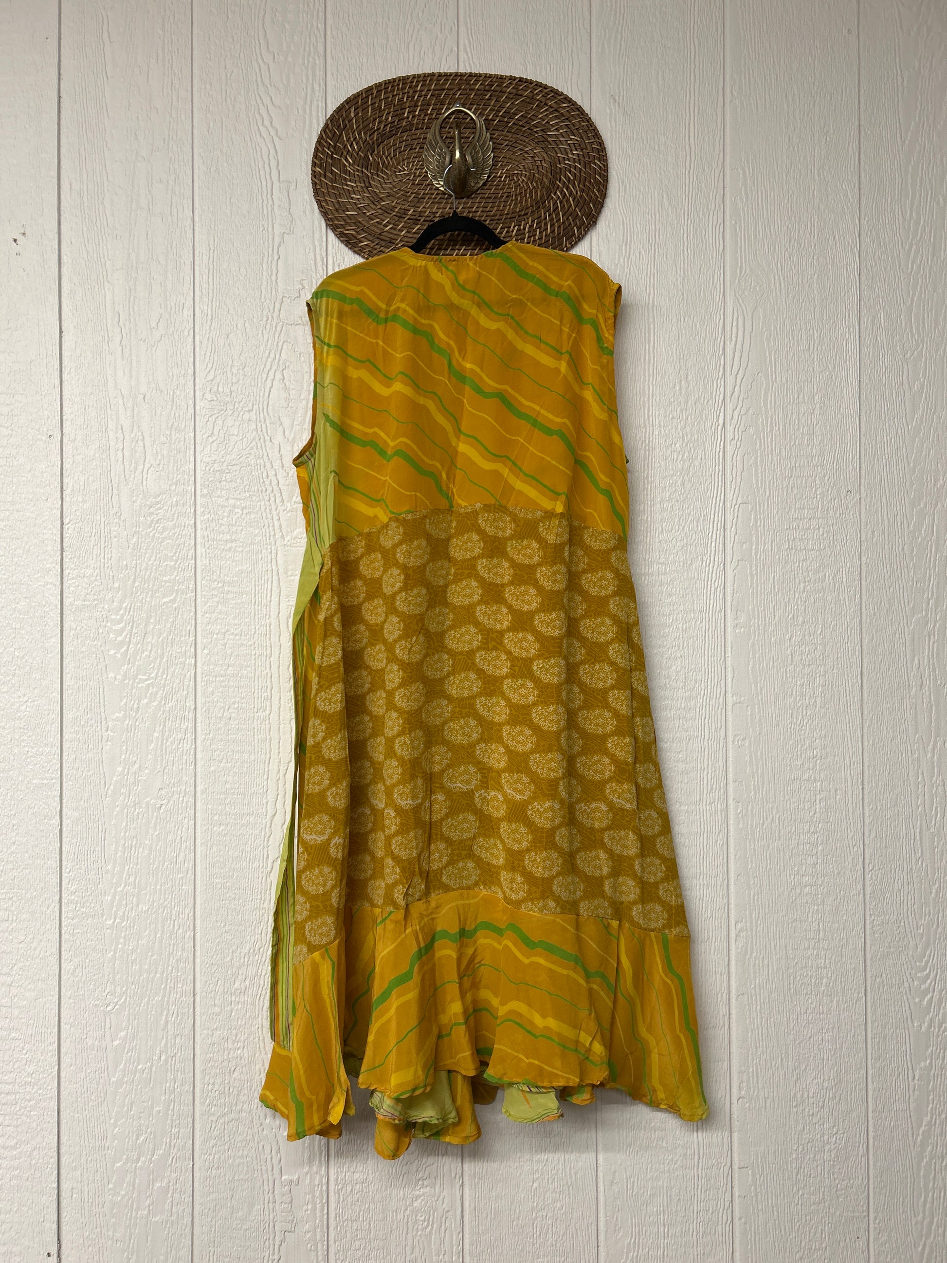 The Rhapsody Kimono Vest is crafted from our ultra lux vintage crepe silk sari. Features ruffle details throughout, interior pockets and a built in sash tie closure to wear open or closed. We're obsessed!