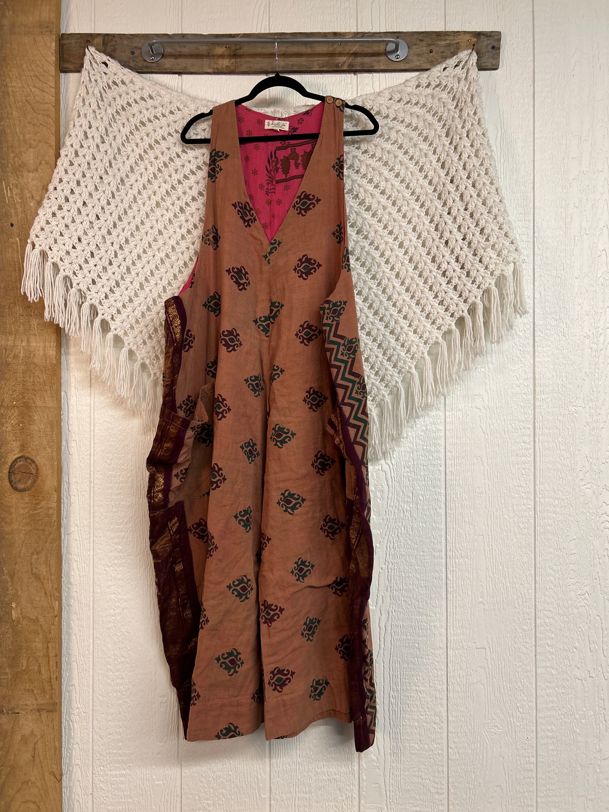 Disclosure: Our vintage styles have lived a full life before becoming the designs in our shop. Fabrics may have small threads or holes in the layers. Color inconsistency or small stains may be present. The saris are sewn together and extend the life of each design. Imperfections should be celebrated.