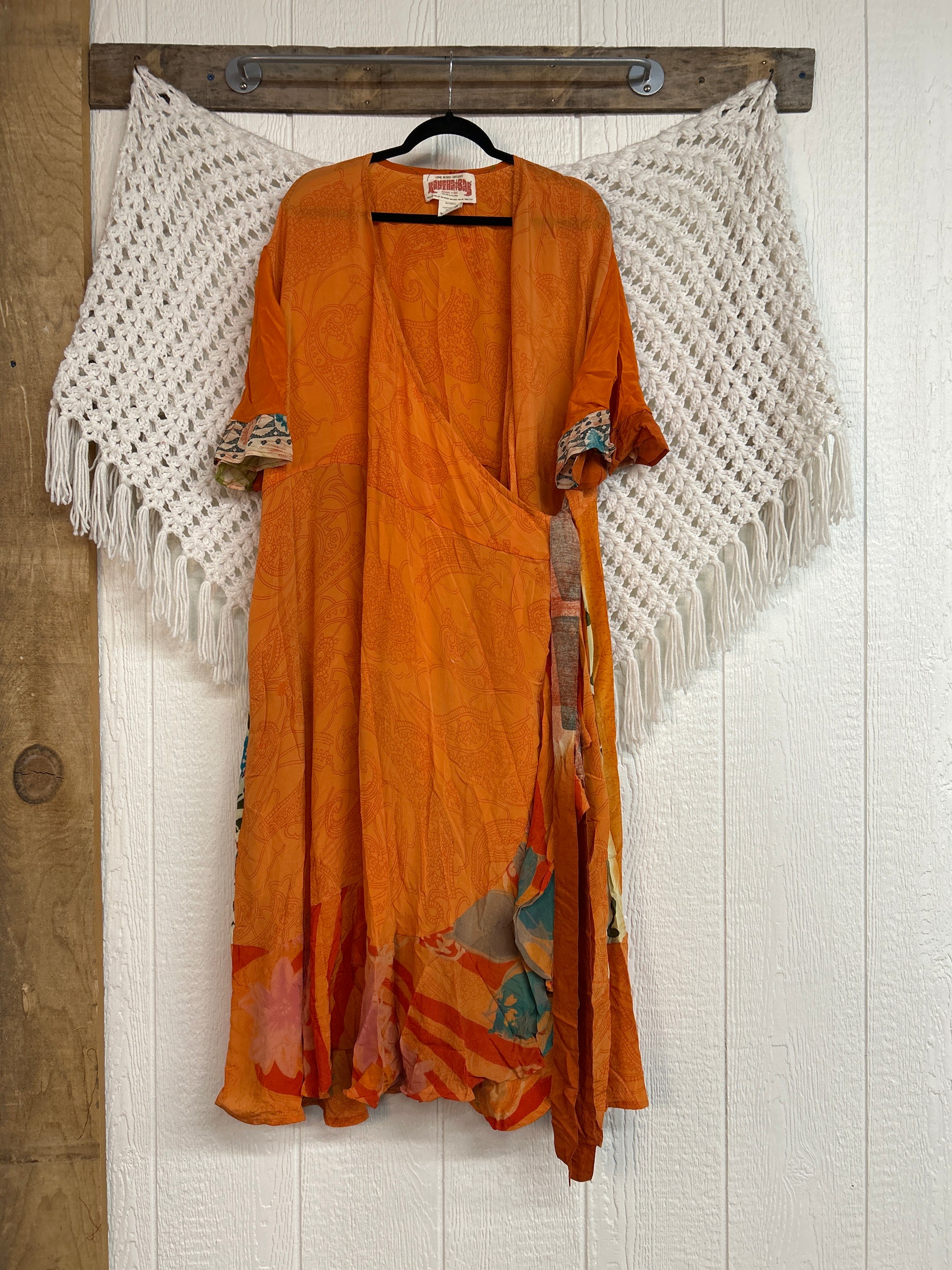 The Summer Flourish Wrap Dress is crafted from our ultra lux vintage crepe sari. Features short bell sleeves, ruffle details throughout and a built in sash belt which wraps around the body to make this beauty fully customizable for a wide range of sizes. You can also wear the Flourish open as a vibey kimono over your favorite outfit. We're obsessed!