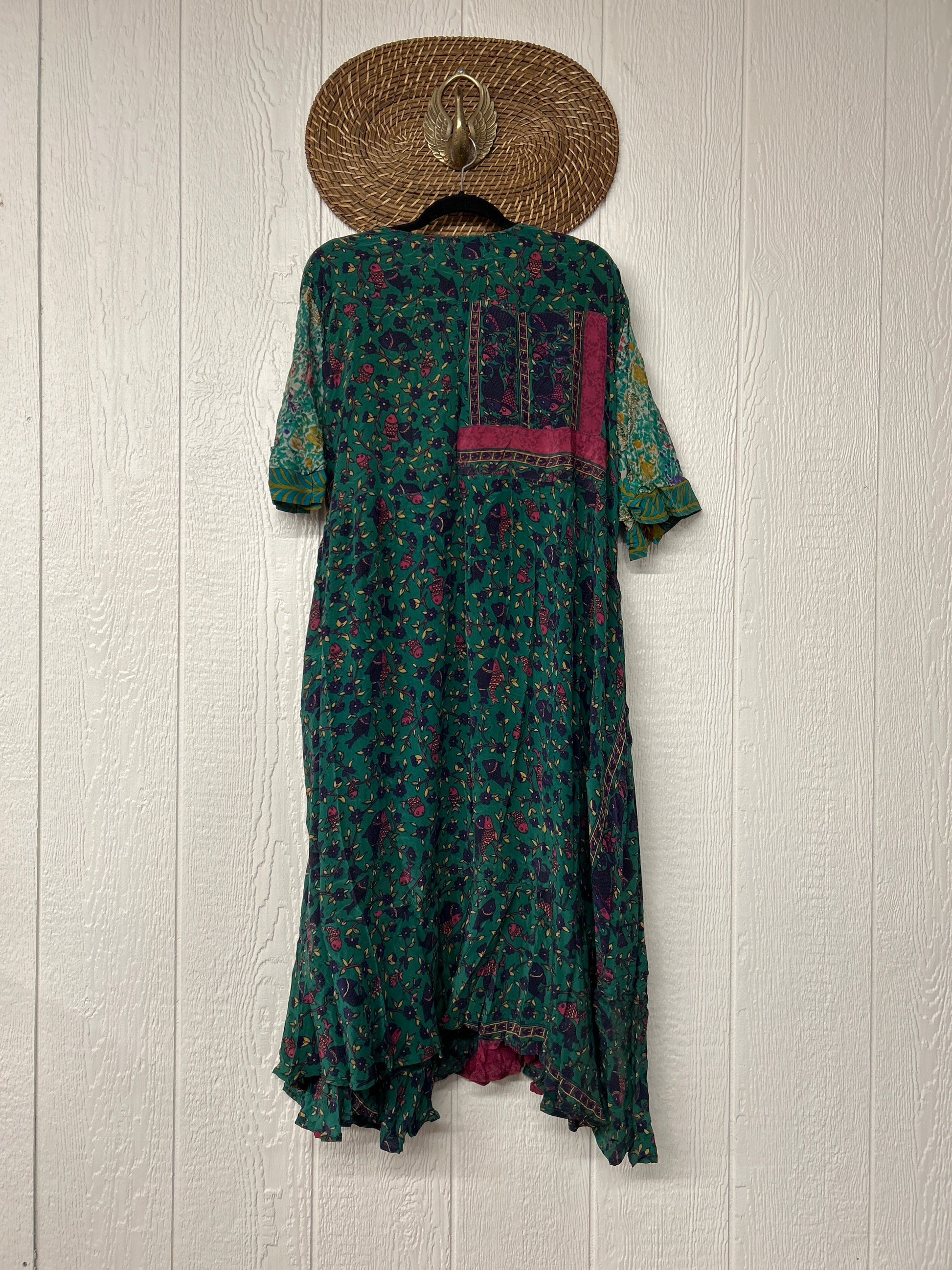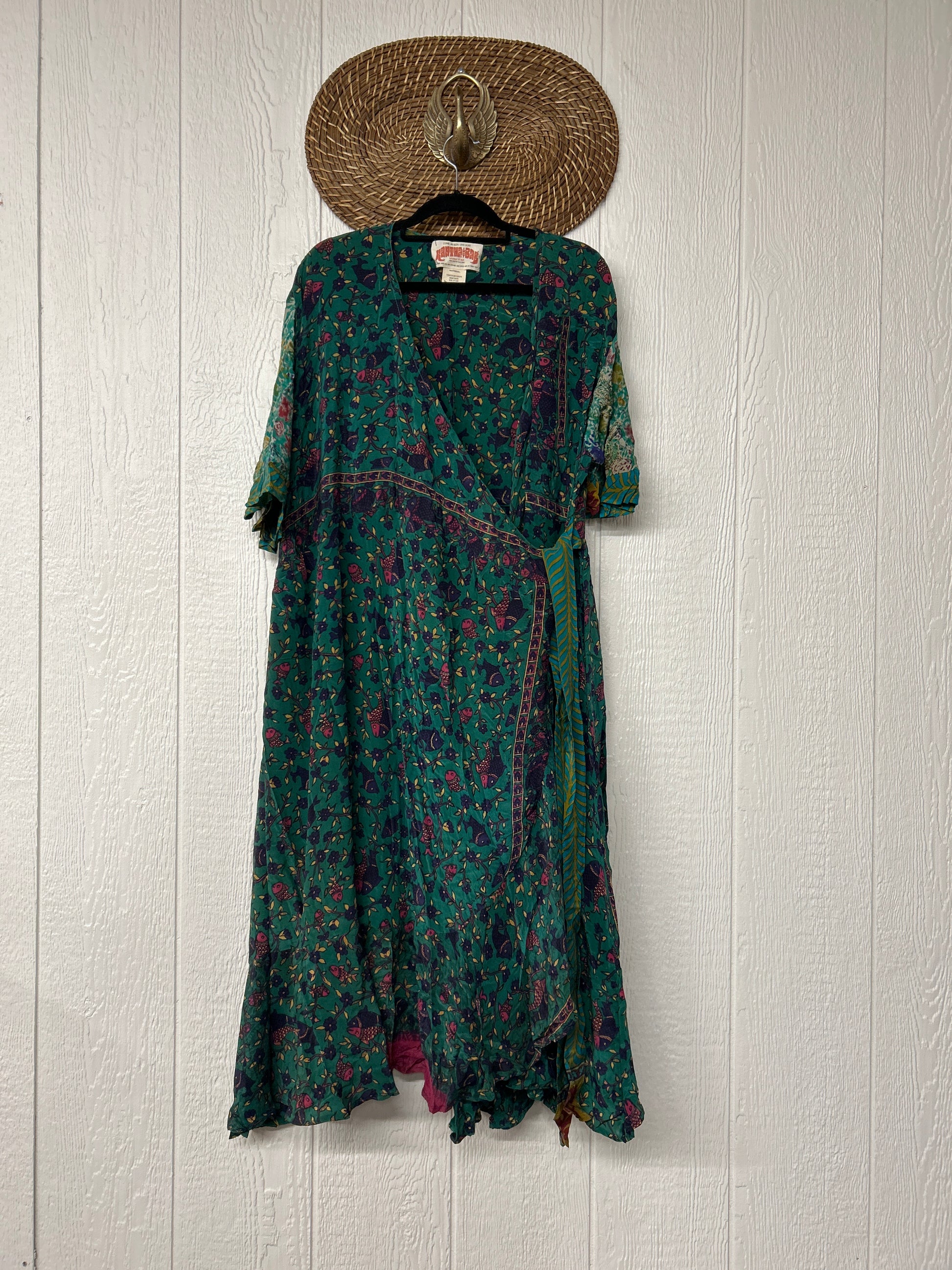 The Summer Flourish Wrap Dress is crafted from our ultra lux vintage crepe sari. Features short bell sleeves, ruffle details throughout and a built in sash belt which wraps around the body to make this beauty fully customizable for a wide range of sizes. You can also wear the Flourish open as a vibey kimono over your favorite outfit. We're obsessed!