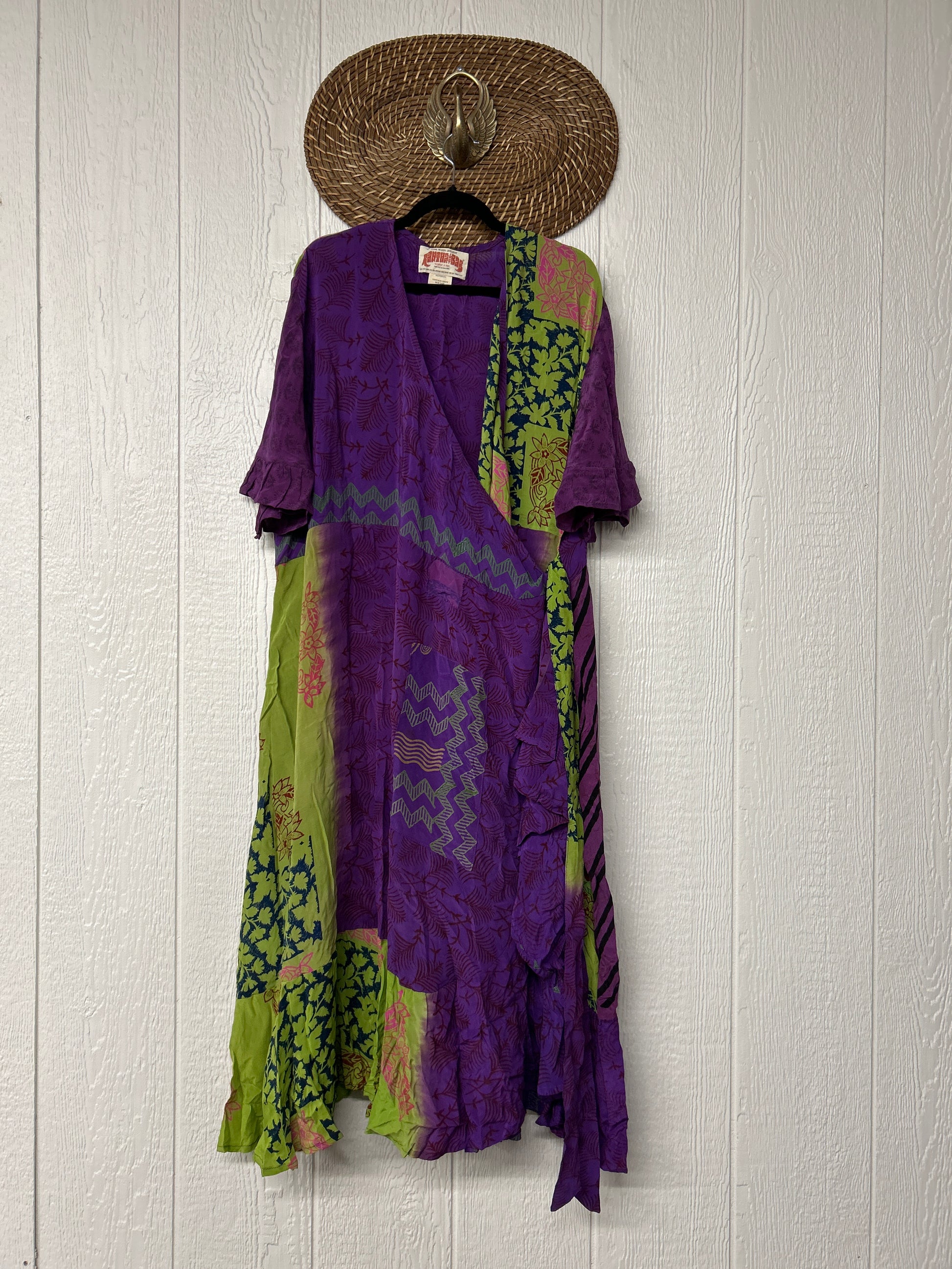 The Summer Flourish Wrap Dress is crafted from our ultra lux vintage crepe sari. Features short bell sleeves, ruffle details throughout and a built in sash belt which wraps around the body to make this beauty fully customizable for a wide range of sizes. You can also wear the Flourish open as a vibey kimono over your favorite outfit. We're obsessed!