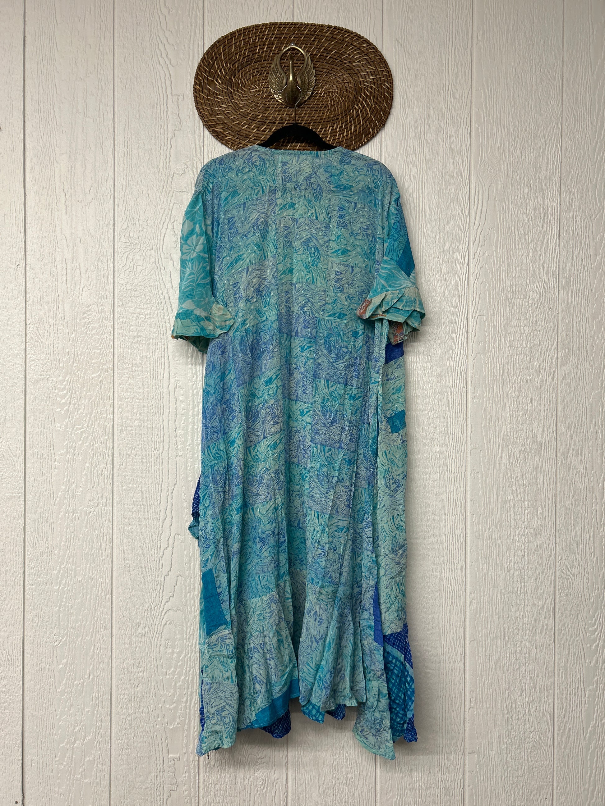 The Summer Flourish Wrap Dress is crafted from our ultra lux vintage crepe sari. Features short bell sleeves, ruffle details throughout and a built in sash belt which wraps around the body to make this beauty fully customizable for a wide range of sizes. You can also wear the Flourish open as a vibey kimono over your favorite outfit. We're obsessed!