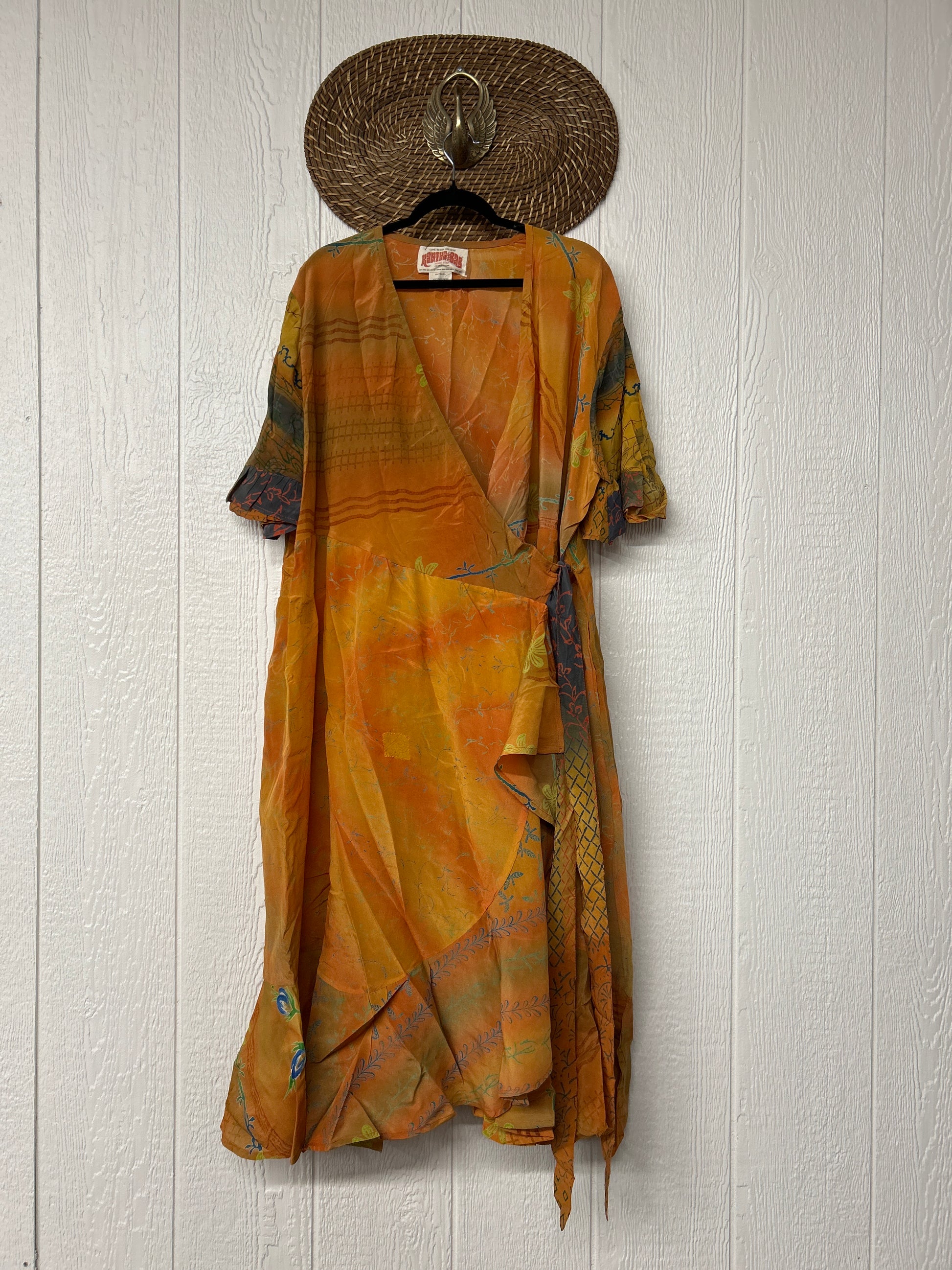 The Summer Flourish Wrap Dress is crafted from our ultra lux vintage crepe sari. Features short bell sleeves, ruffle details throughout and a built in sash belt which wraps around the body to make this beauty fully customizable for a wide range of sizes. You can also wear the Flourish open as a vibey kimono over your favorite outfit. We're obsessed!