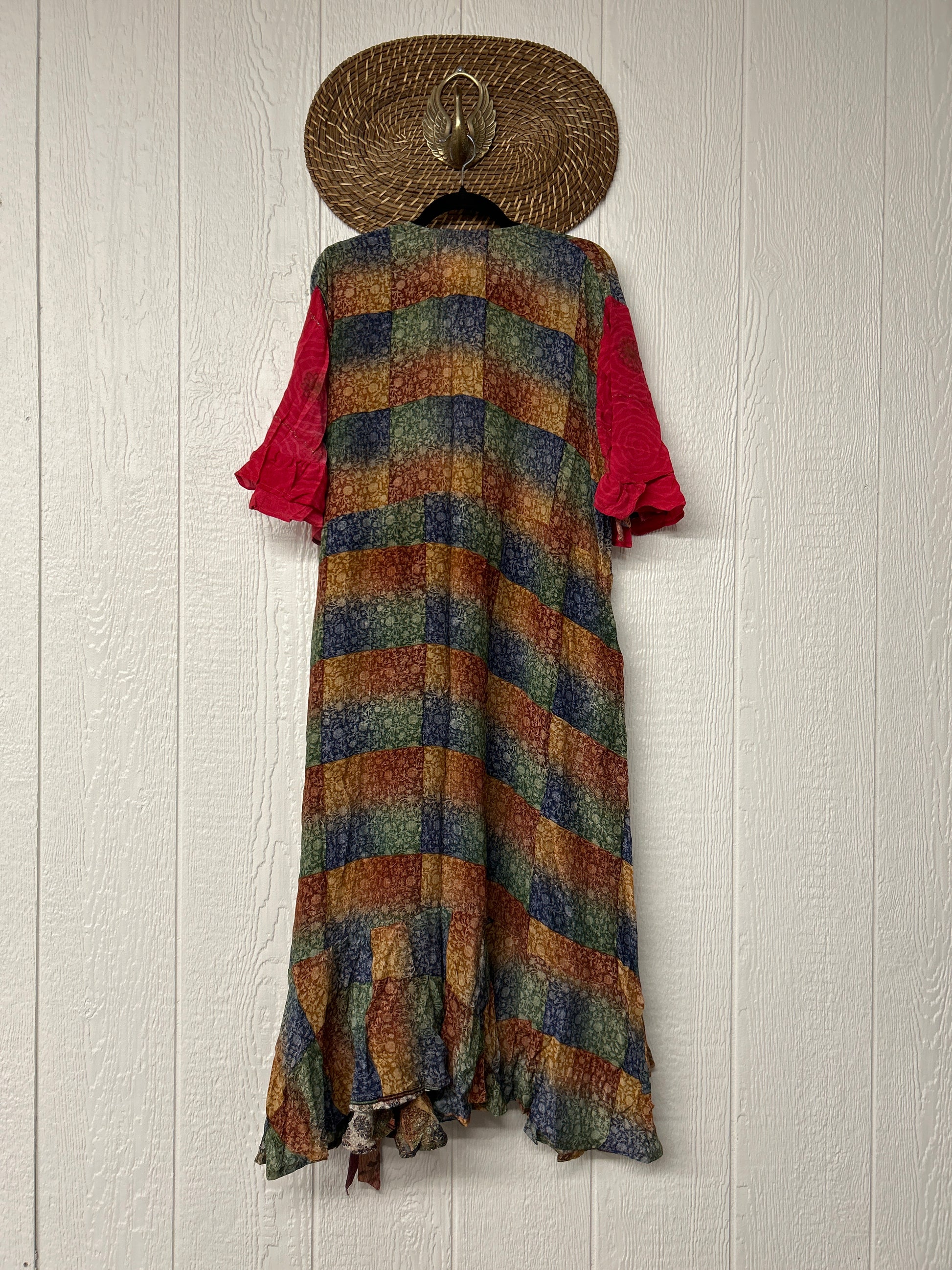 The Summer Flourish Wrap Dress is crafted from our ultra lux vintage crepe sari. Features short bell sleeves, ruffle details throughout and a built in sash belt which wraps around the body to make this beauty fully customizable for a wide range of sizes. You can also wear the Flourish open as a vibey kimono over your favorite outfit. We're obsessed!
