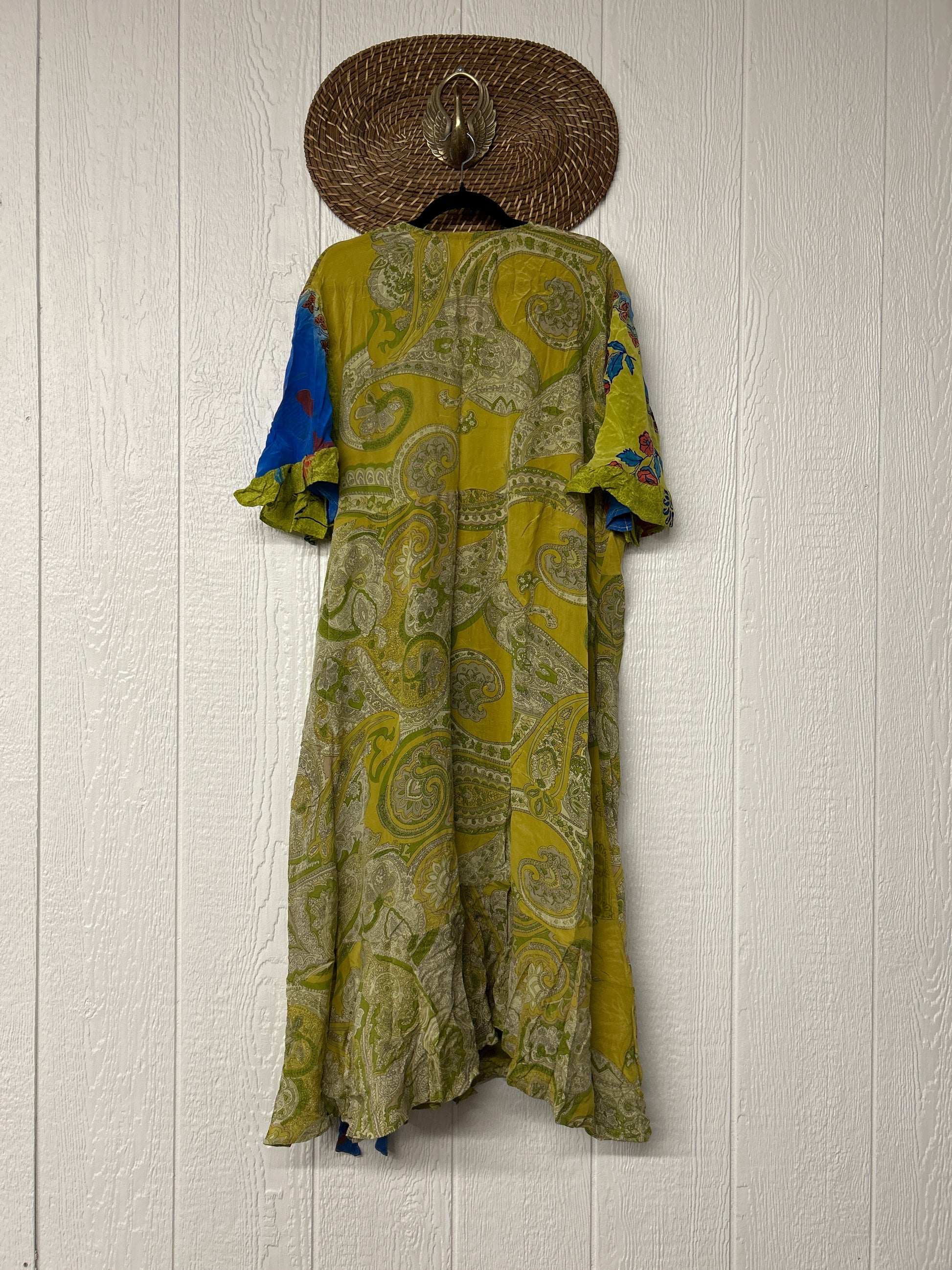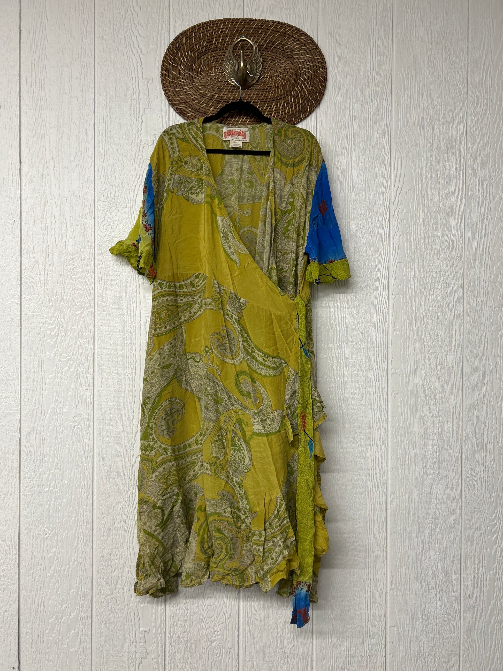 The Summer Flourish Wrap Dress is crafted from our ultra lux vintage crepe sari. Features short bell sleeves, ruffle details throughout and a built in sash belt which wraps around the body to make this beauty fully customizable for a wide range of sizes. You can also wear the Flourish open as a vibey kimono over your favorite outfit. We're obsessed!