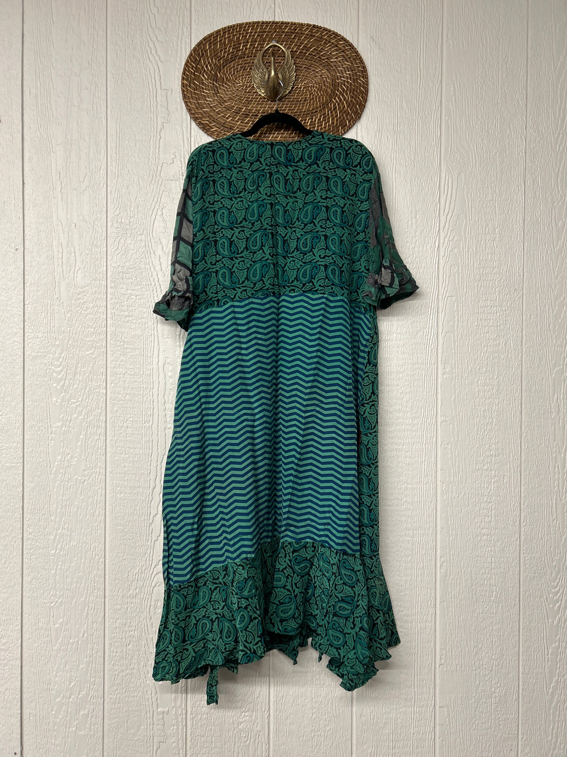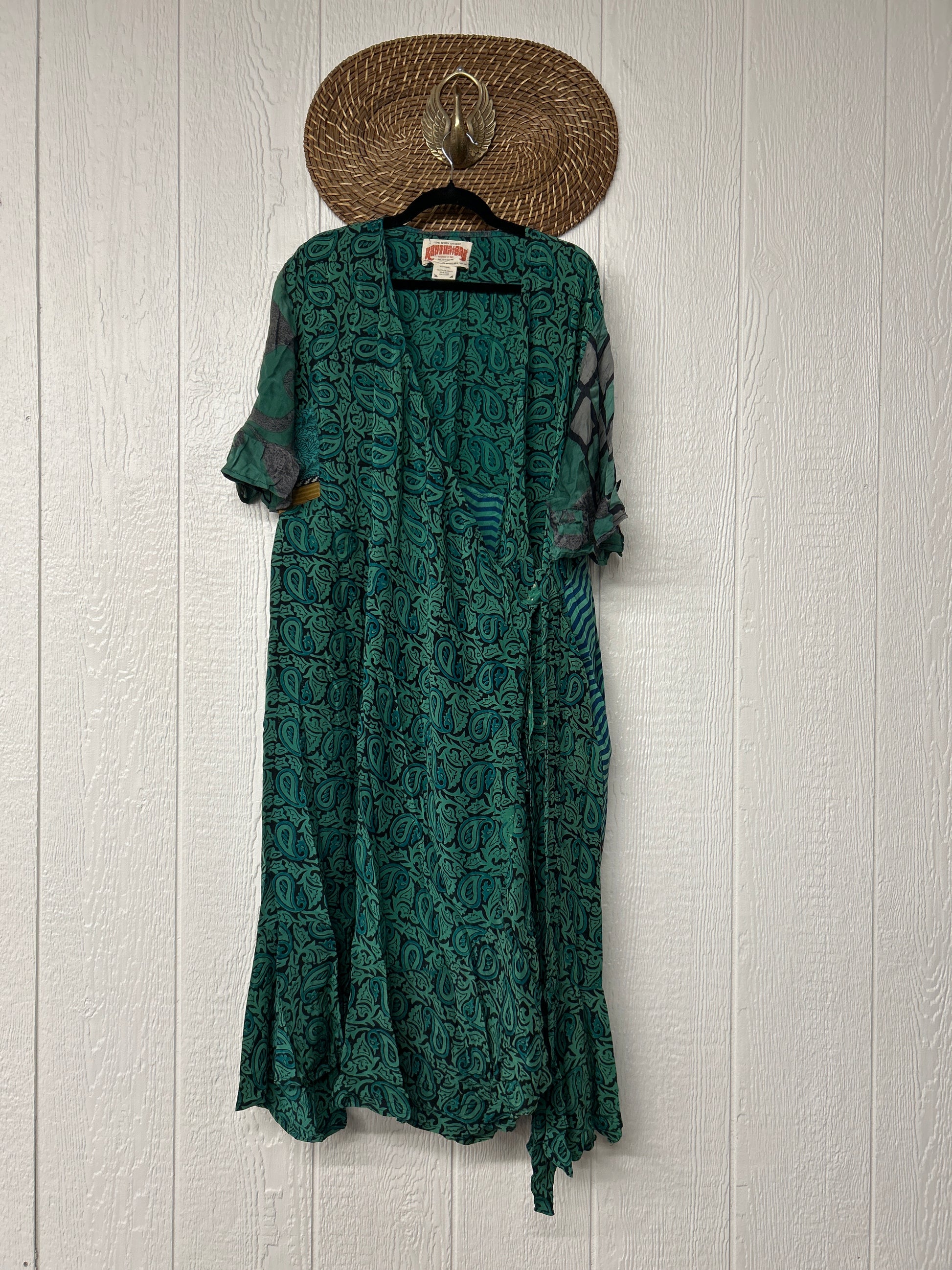 The Summer Flourish Wrap Dress is crafted from our ultra lux vintage crepe sari. Features short bell sleeves, ruffle details throughout and a built in sash belt which wraps around the body to make this beauty fully customizable for a wide range of sizes. You can also wear the Flourish open as a vibey kimono over your favorite outfit. We're obsessed!